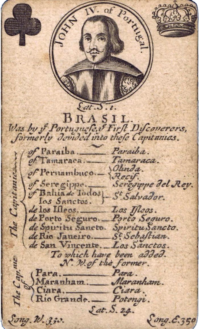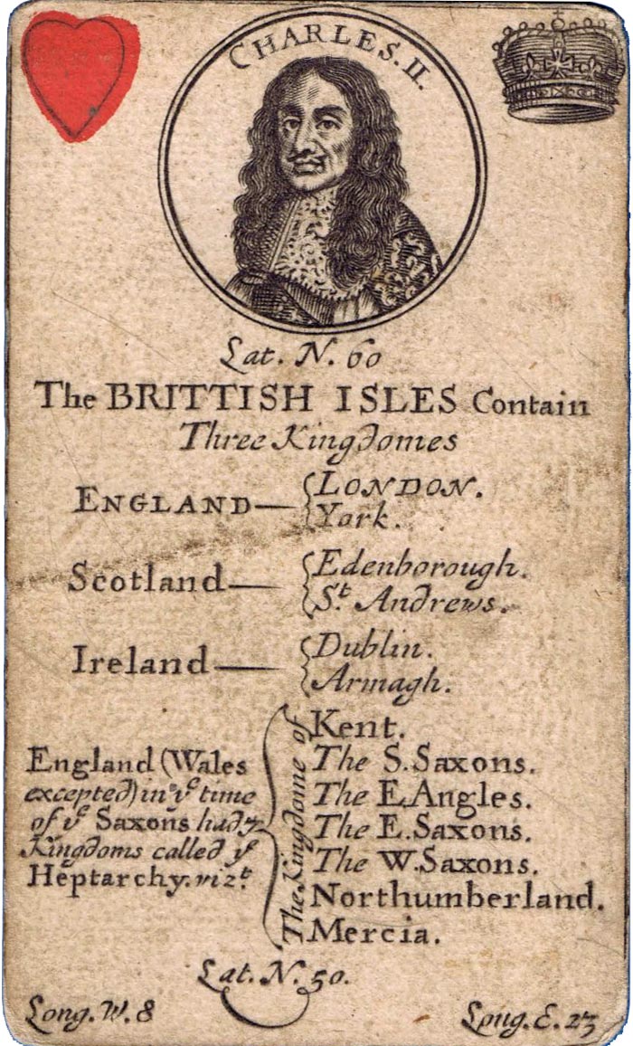 Geographical playing cards sold by Henry Brome, second edition, c.1682.
