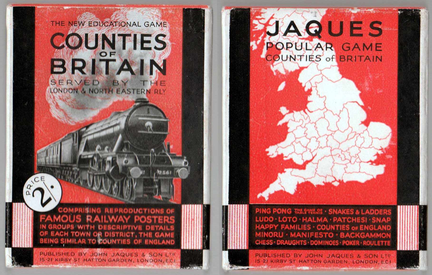 Above: Counties of Britain by John Jaques & Son Ltd., 15-21 Kirby St, Hatton Garden, London E.C.1., c.1930. 46 cards in box + leaflet.