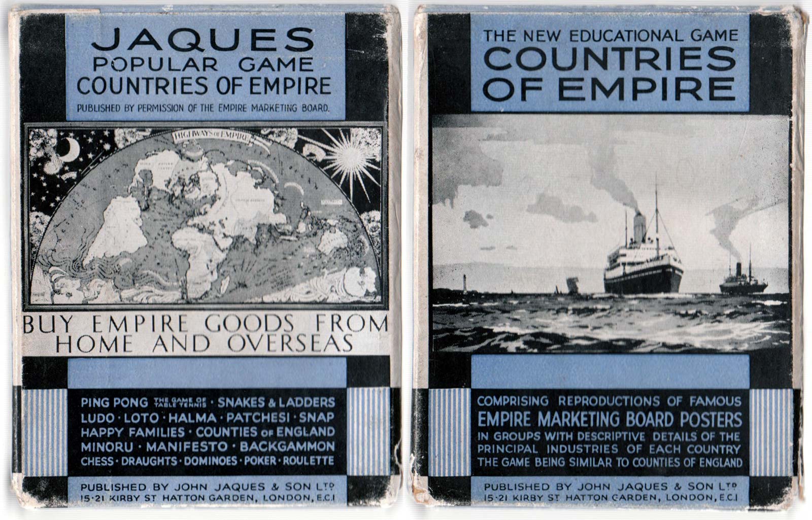 “Countries of Empire” educational card game published by John Jaques & Son Ltd, c.1930s. The picture cards are illustrated with reproductions of Empire Marketing Board posters showing various industries and activities. See the Rules►