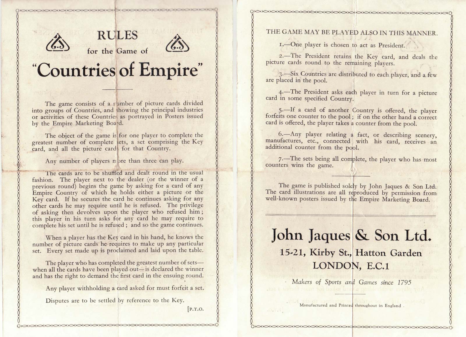 Above: “Countries of Empire” card game published by John Jaques & Son Ltd, c.1930s.