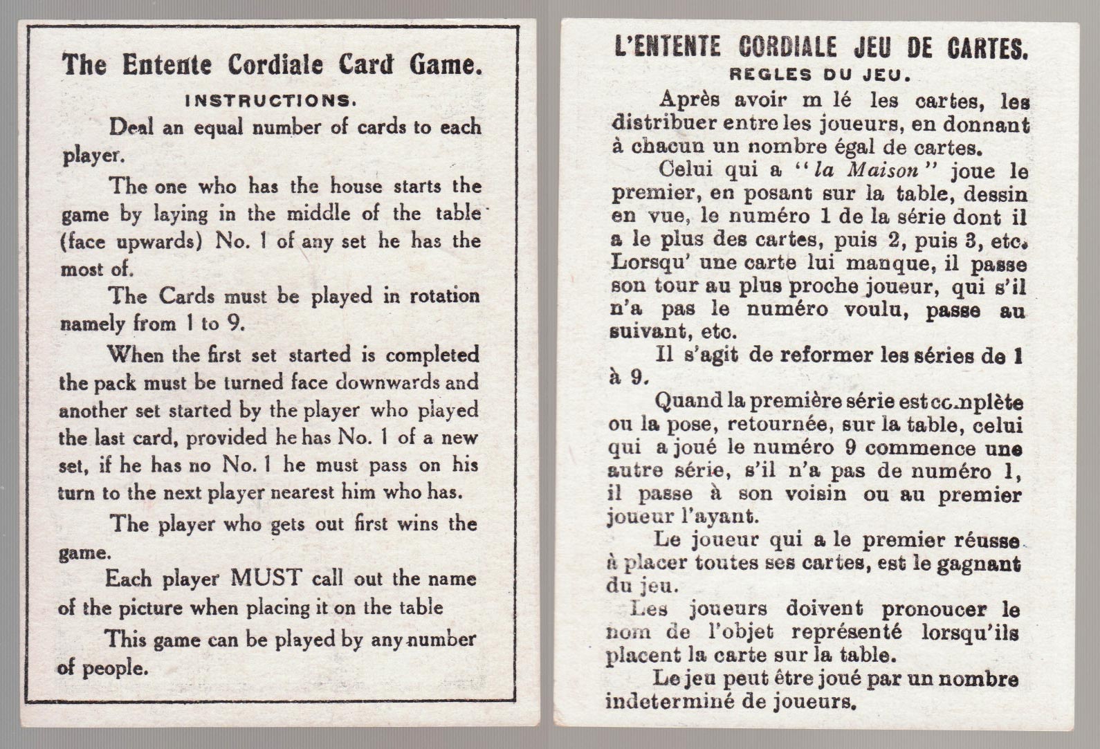 John Jaques and Son's The Entente Cordiale Card Game, c.1905. The Entente Cordiale is a series of agreements signed on 8 April 1904 between the United Kingdom and the French Republic. See the Rules►