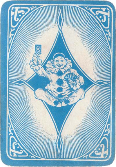 Above: a slightly different version of the first edition of these cards, but with the same back design and address: John Jaques & Son Ltd., Kirby St, London EC1. The differences are most noticeable on the following cards - UN GILET, UN HABIT, UN PANTALON, UN PARAPLUIE. On the first three, there is only the faintest hint of any colouring but all three garments have a very distinctive herringbone pattern. In the case of the umbrella card, mine is black, not red. See the rules. Images courtesy Roddy Somerville.