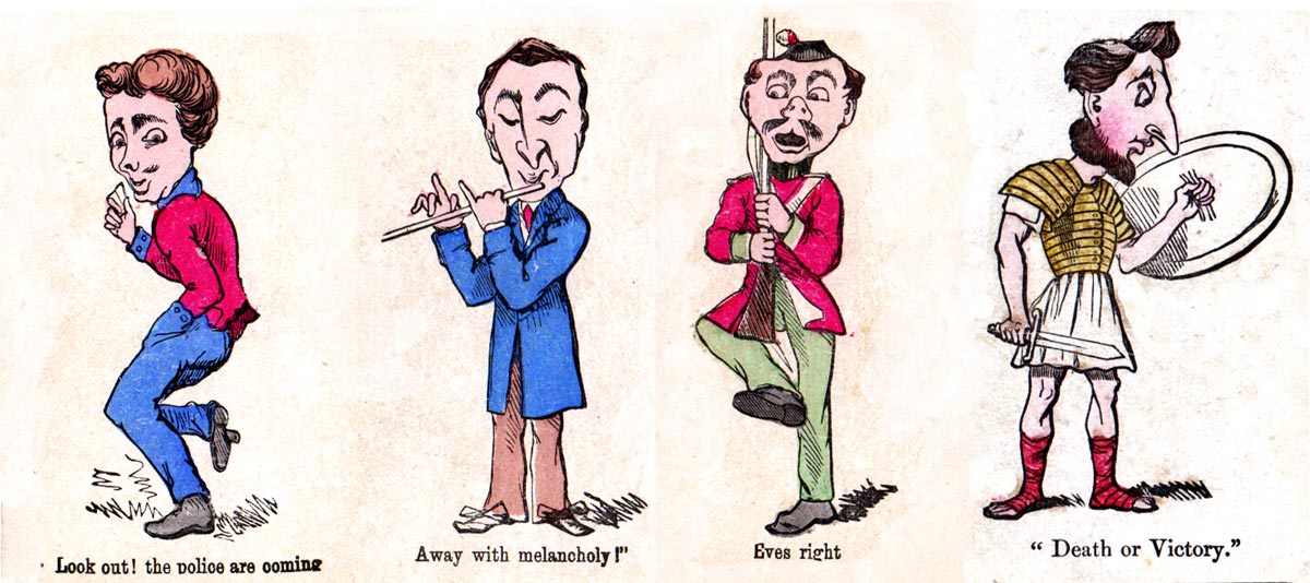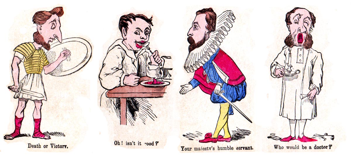 Above: cards from Jaques & Son Snap card game, c.1910 edition, square corners. John Tenniel (1820-1914), who designed the cards, had joined the staff of Punch magazine in 1851 and contributed over 2000 cartoons. He also illustrated numerous books. His fantastic characters on the fast paced game of Snap have captured the imaginations of children for over a century! He was knighted in 1893.