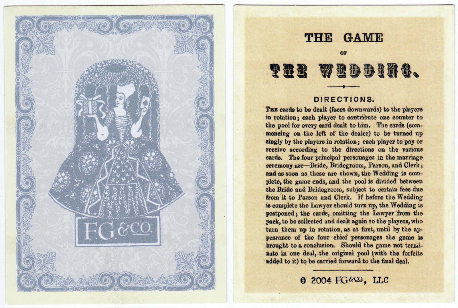 Above: “The Wedding Game” facsimile published by F.G & Co in 2004. The cards are over-sized measuring 88mm x 120mm.