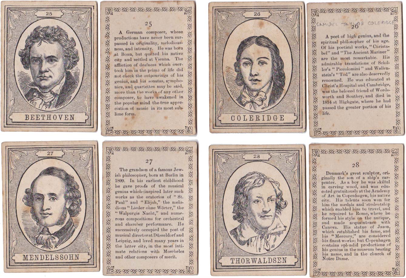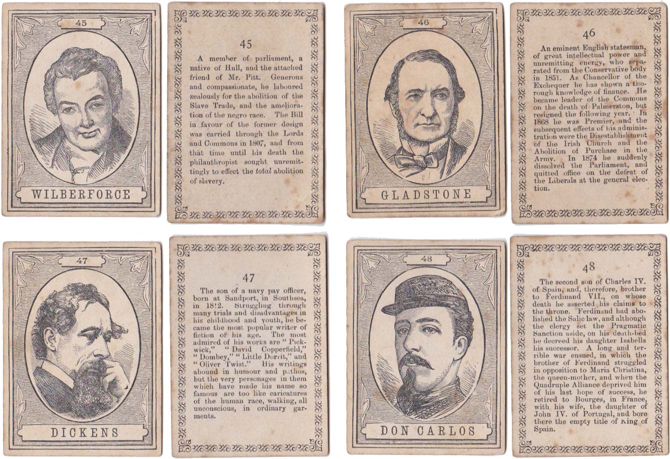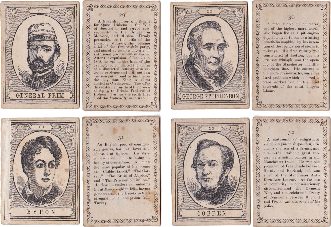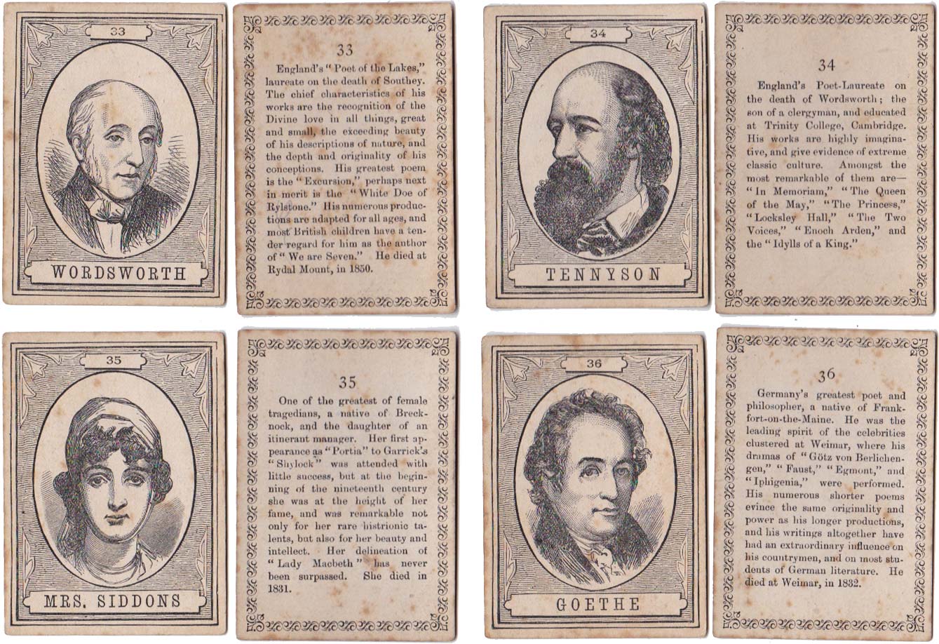 Above: cards from The XIXth Century game published by John Jaques & Son, c.1875. 100 cards in box. Cards size: 5.3 x 7.5 cm. Click on images to zoom.