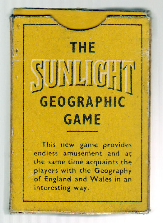 Sunlight household soap was introduced by the British company Lever Brothers in 1884. The Sunlight Geographic Game cards (published c.1930s) make up a map of England and Wales. See the Box►