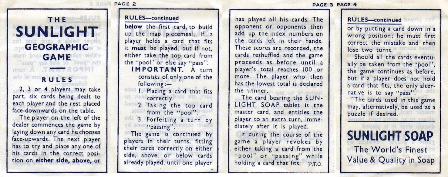 Above: The Sunlight Geographic Game, 1930s. Card size = 35mm x 52mm.