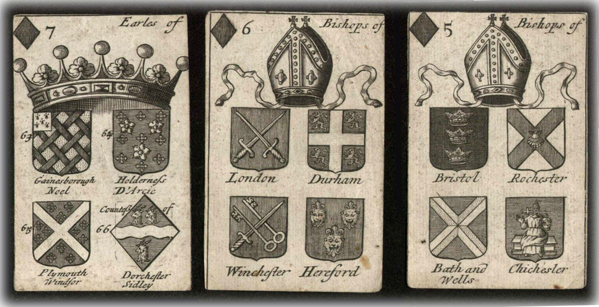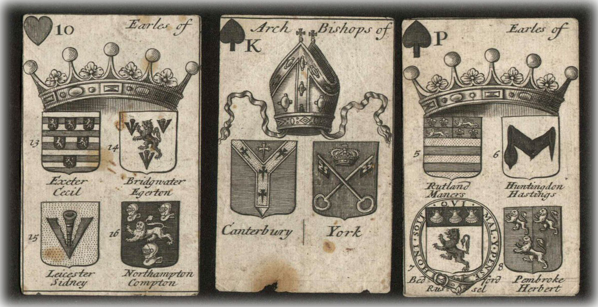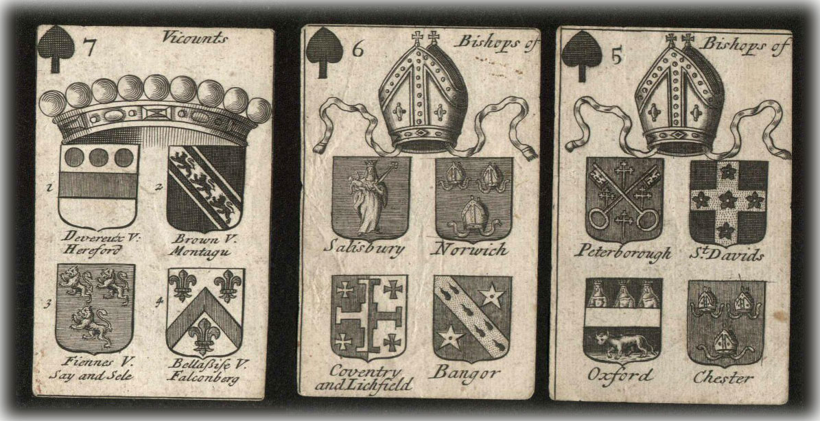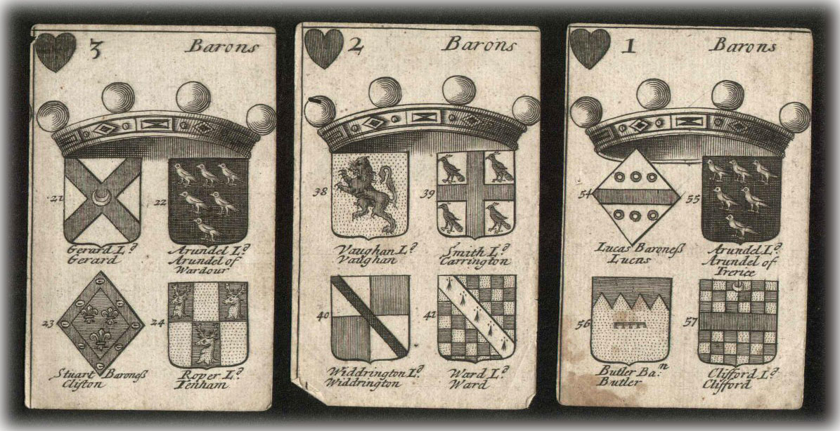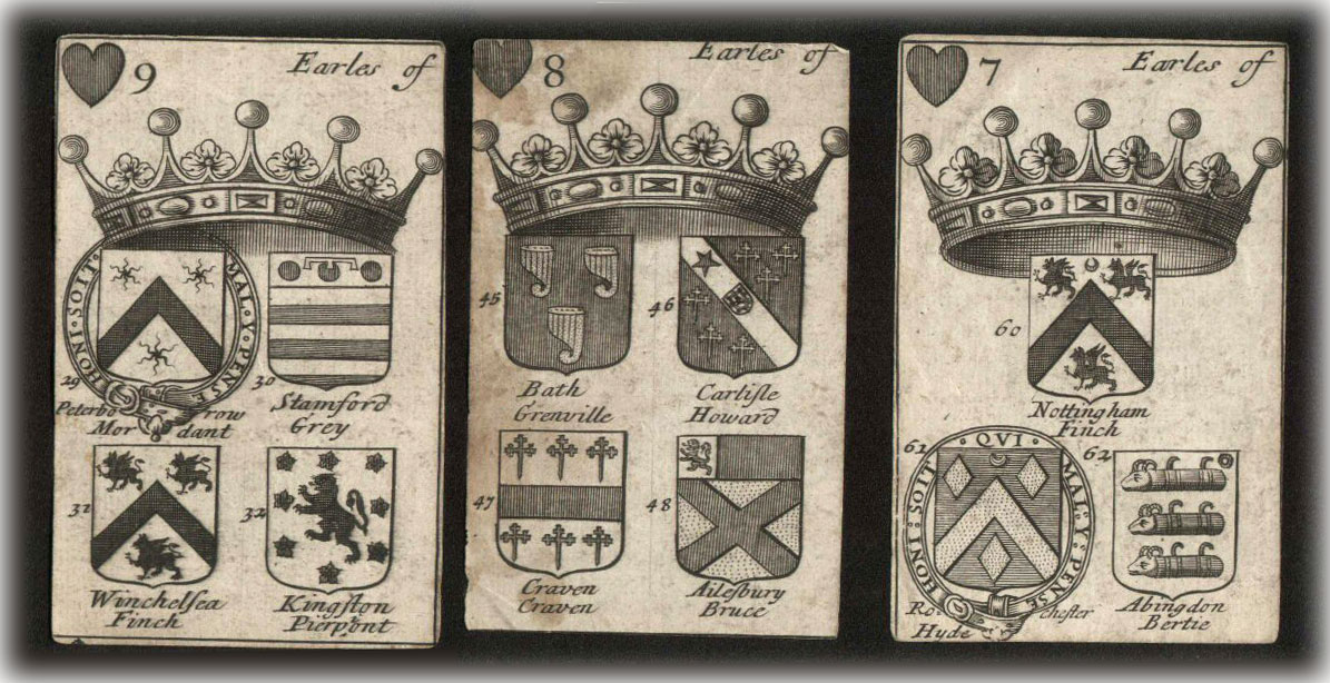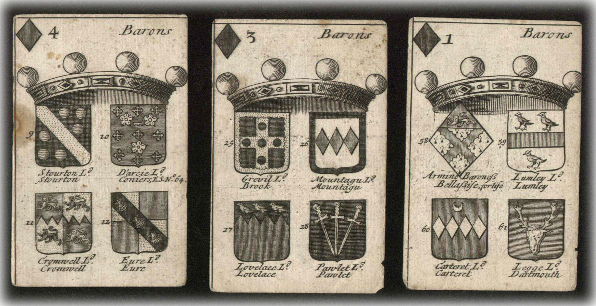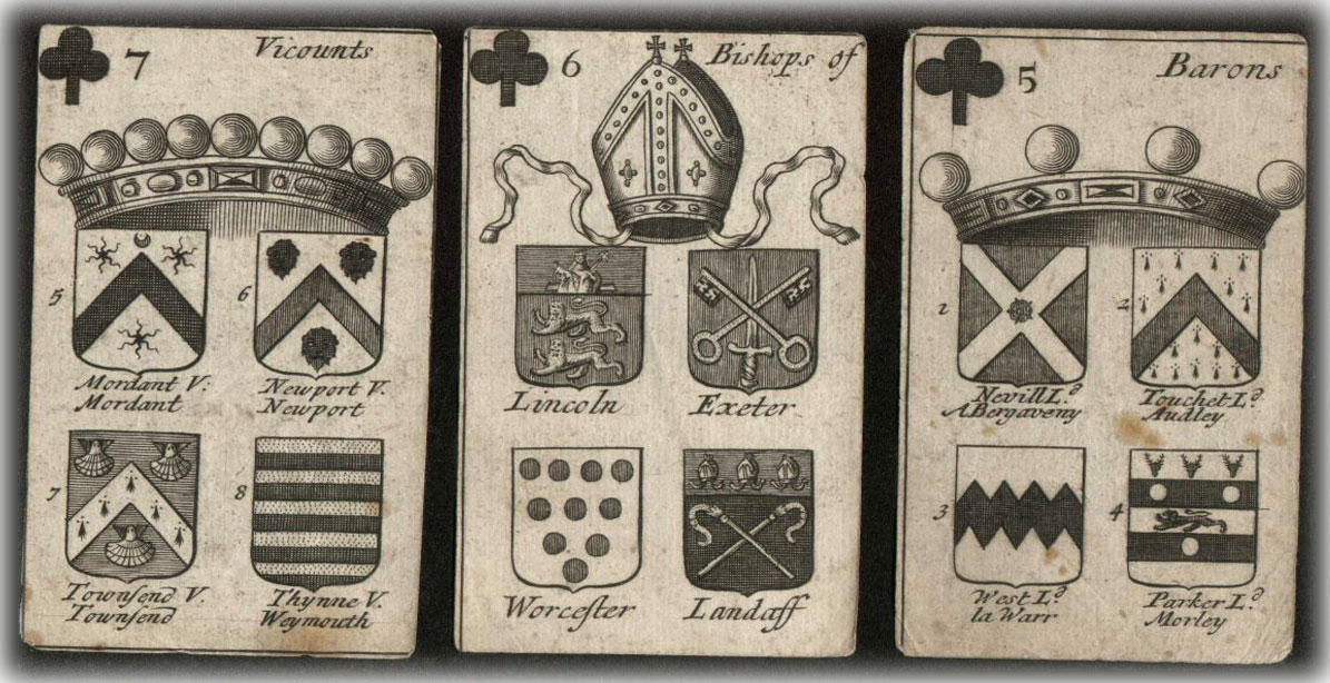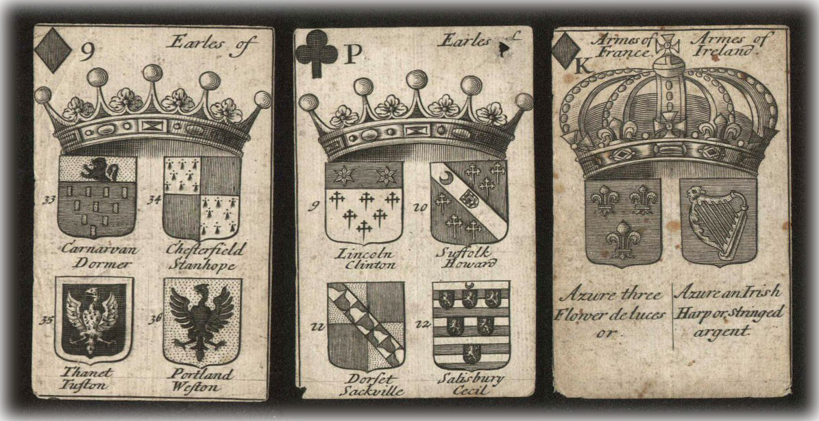 The Arms of English Peers playing cards were first published in 1686. Heraldry, or a knowledge of the arms and blazons of royalty was an important part of a respectable education.