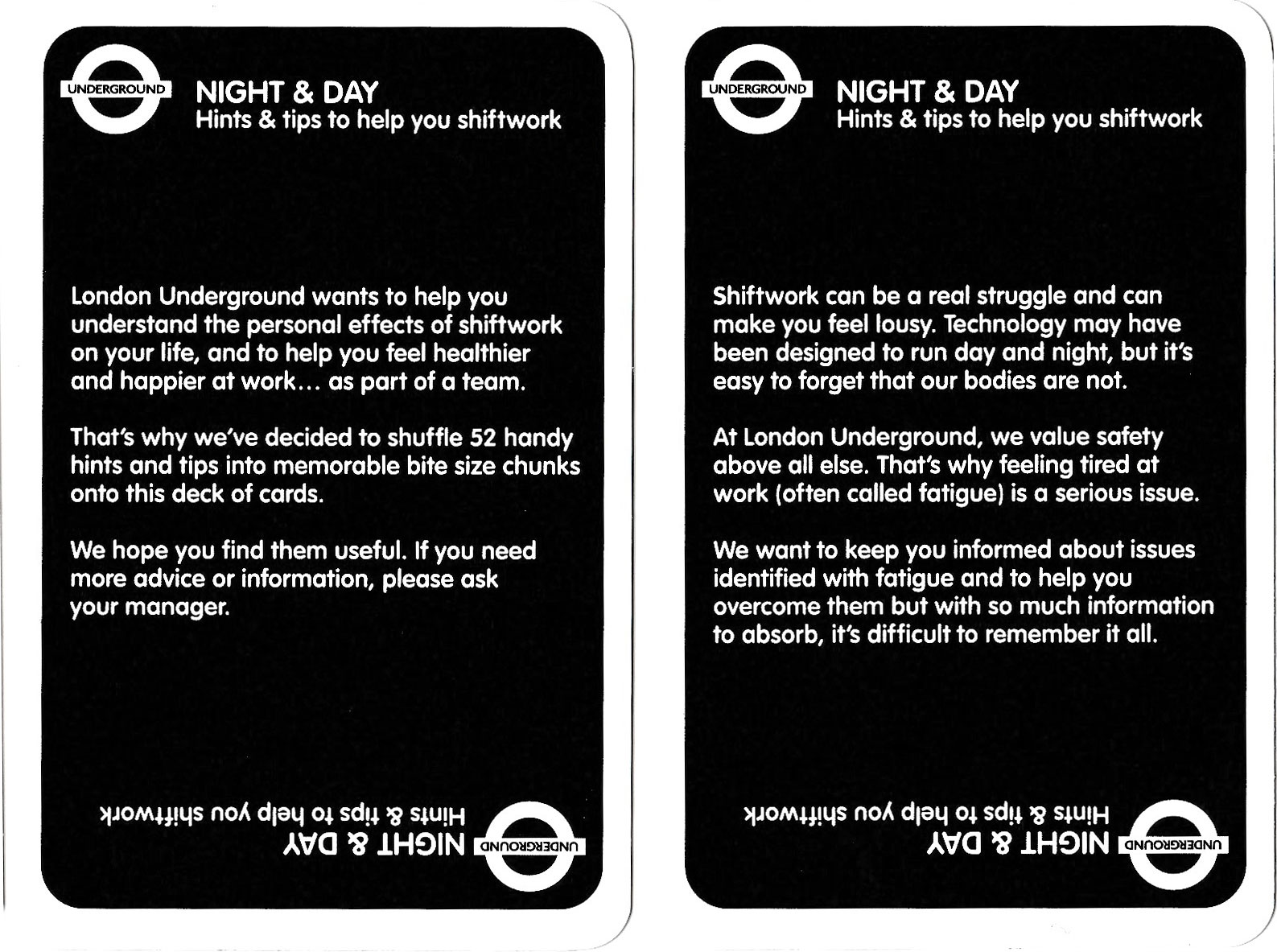 ‘Night & Day’ playing cards produced by London Underground, United Kingdom