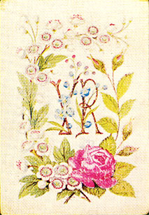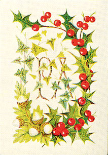 Above: three backs from the Royal Illuminated Playing Cards, c.1850. Charles Dickens was delighted with the 'poetry of card-making', the 'graceful designs' and 'dainty little pictures' by Owen Jones which appeared on the firm's playing cards for members of the Royal family. Jones-designed cards were expensive. De La Rue advertised the 'Royal Illuminated Playing Cards' in an 1851 Illustrated London News at 'Two Guineas the Set of four patterns or singly 10s 6d the pack'. This was, of course, extremely expensive. The Queen's design depicts roses and hawthorn. Prince Albert's consist of prickly holly, ivy and oak. The Prince of Wales' design depicts daisies and fuchsias.