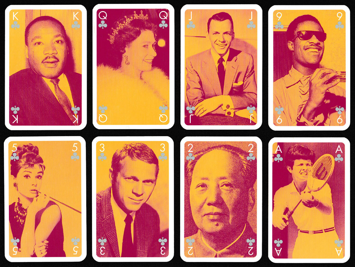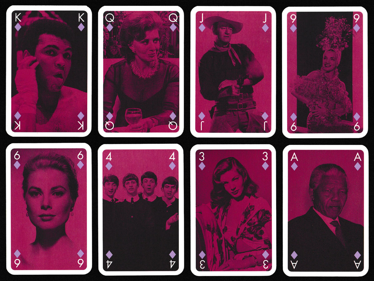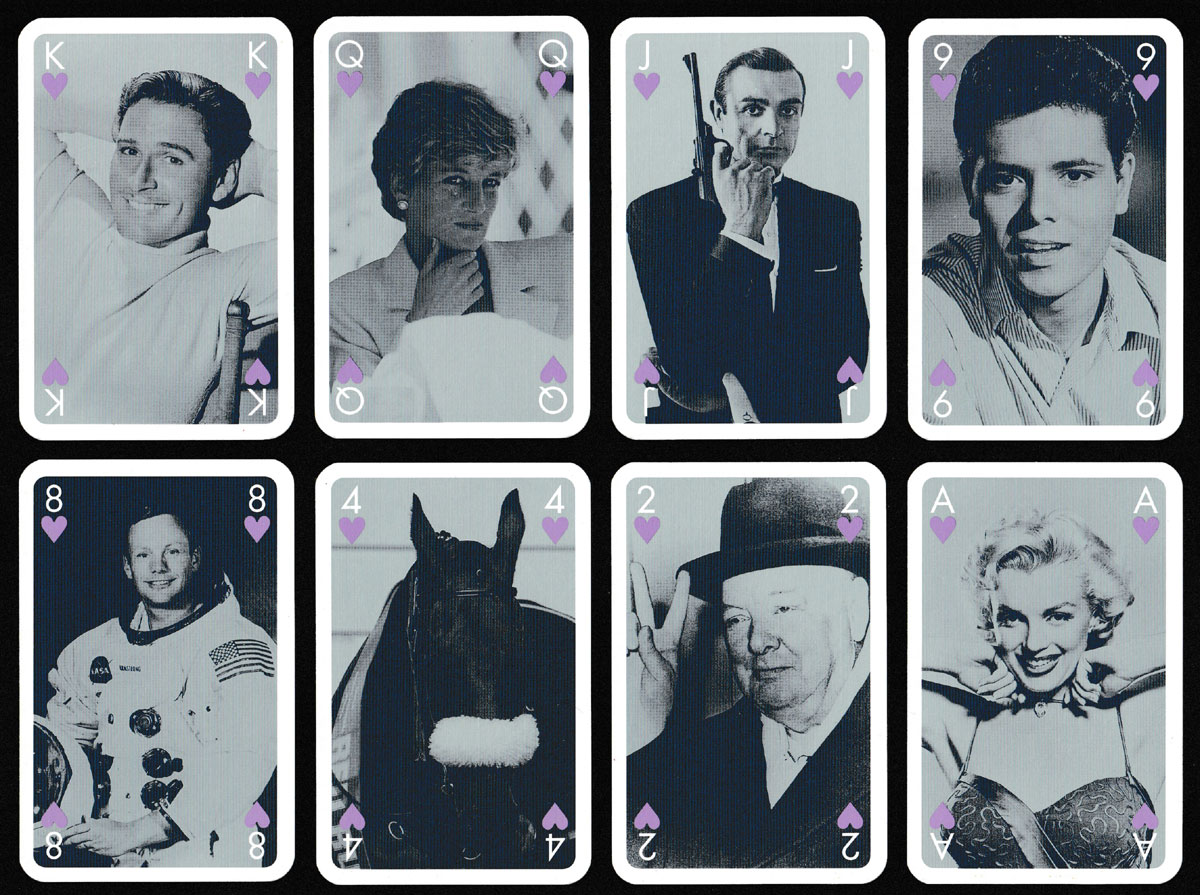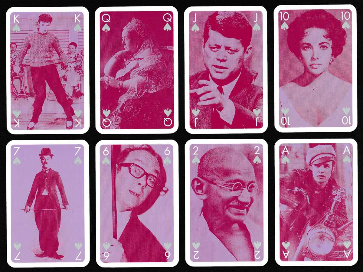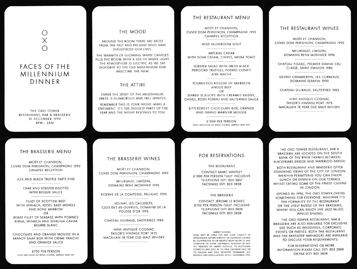 Above: OXO Faces of the Millennium Dinner playing cards made for Harvey Nichols, London, 1999. 52 cards + 8 extra cards with text. Size: 58 x 89 mm.
