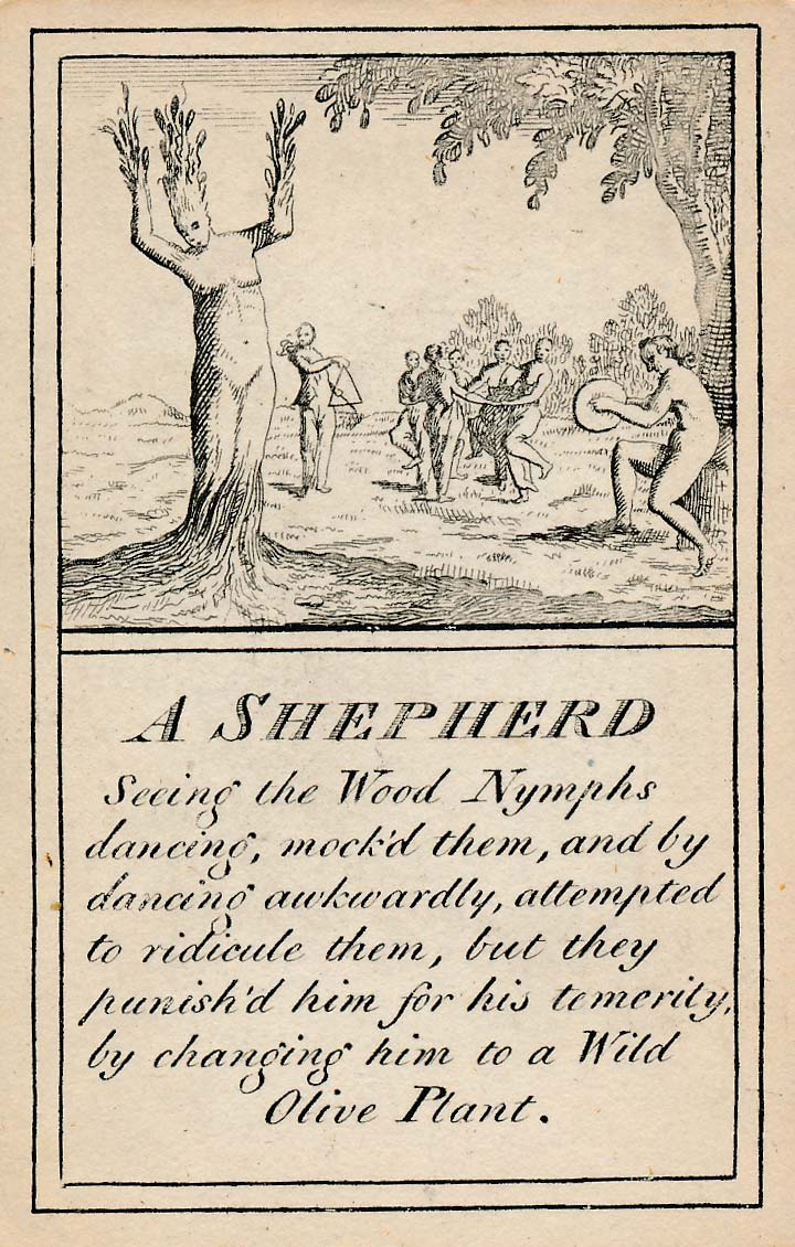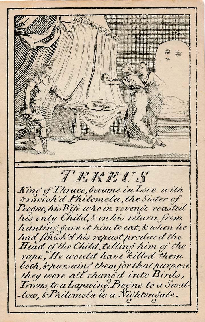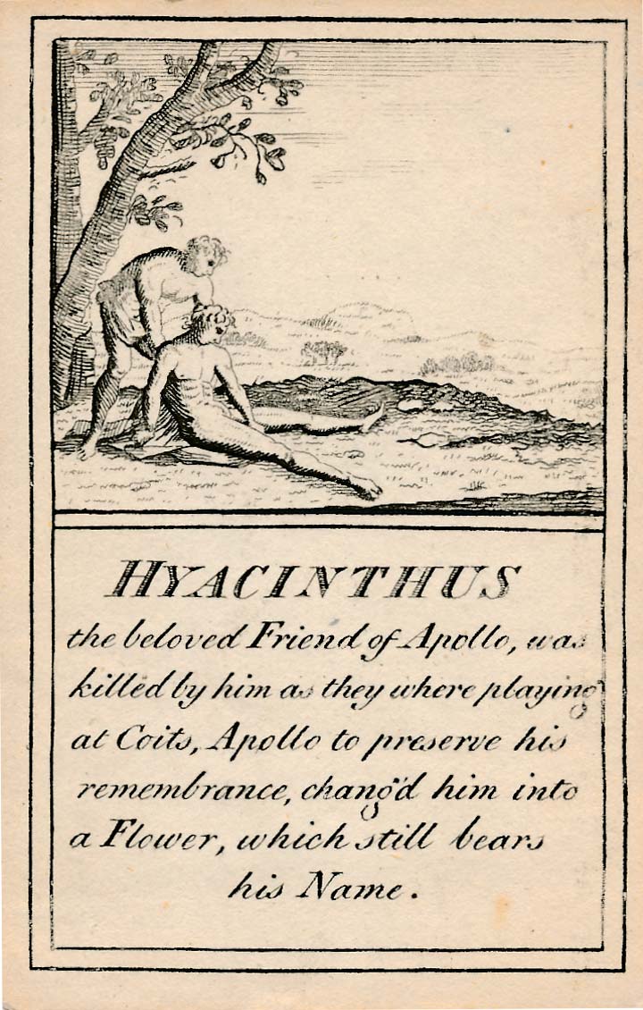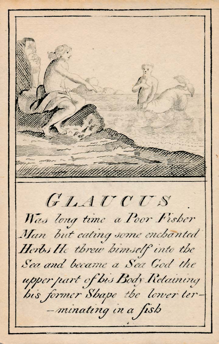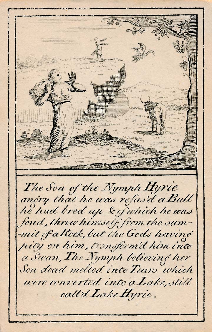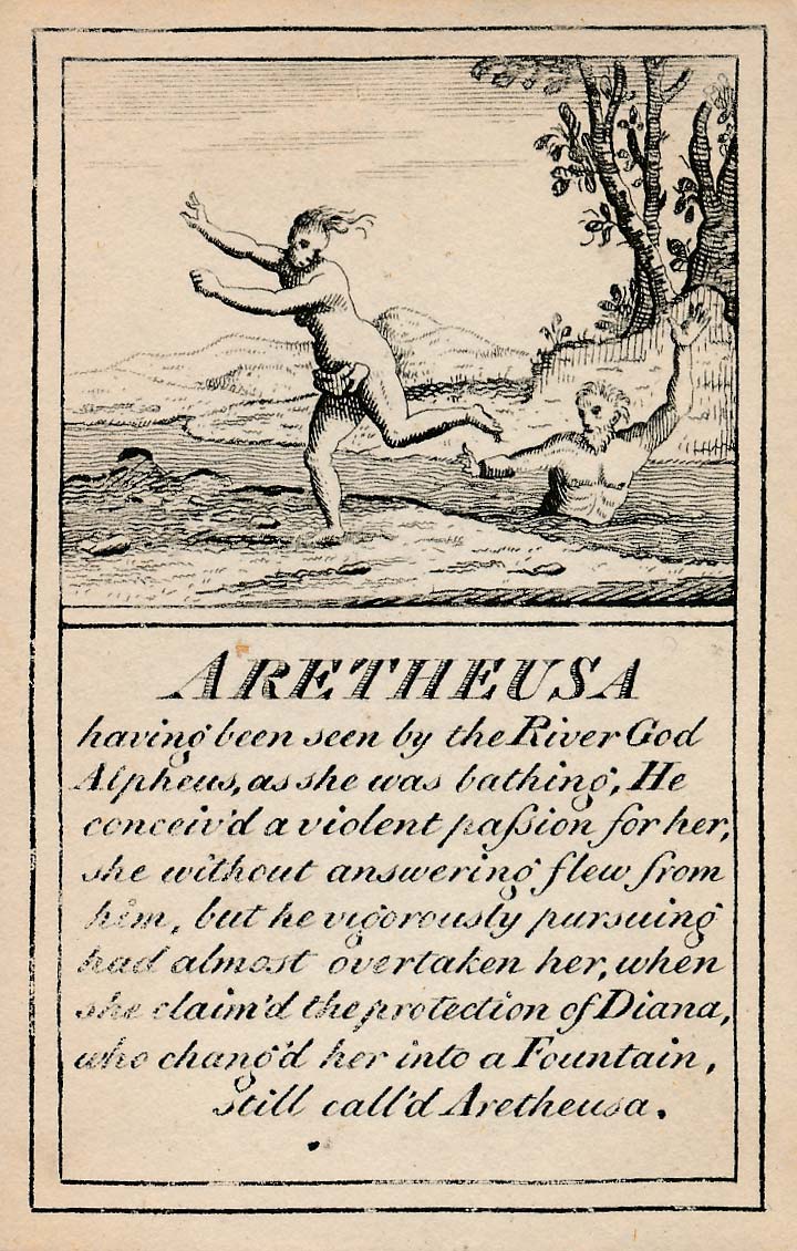 In those days interest in the history of ancient gods and classical mythology was inspired by emerging studies in archaeology, genealogy and other forms of antiquarianism. But these “Pantheon” cards were designed for amusement and sold at Willerton’s Toy Shop, London, c.1770. Interestingly there are two cards for two characters (Ceries and Iphis) both different, referring to different incidents.
