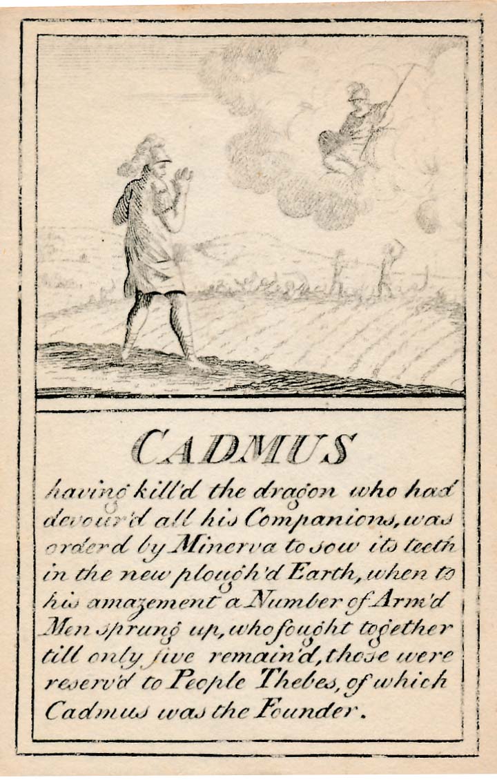 Above: Pantheon or “Heathen Mythology” cards for instruction of youth, c.1770.