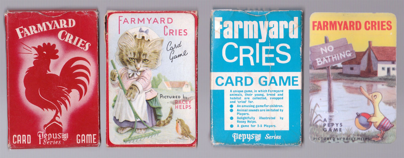 Above: Farmyard Cries card game, designed by Racey Helps and published by Pepys Games, 1952.