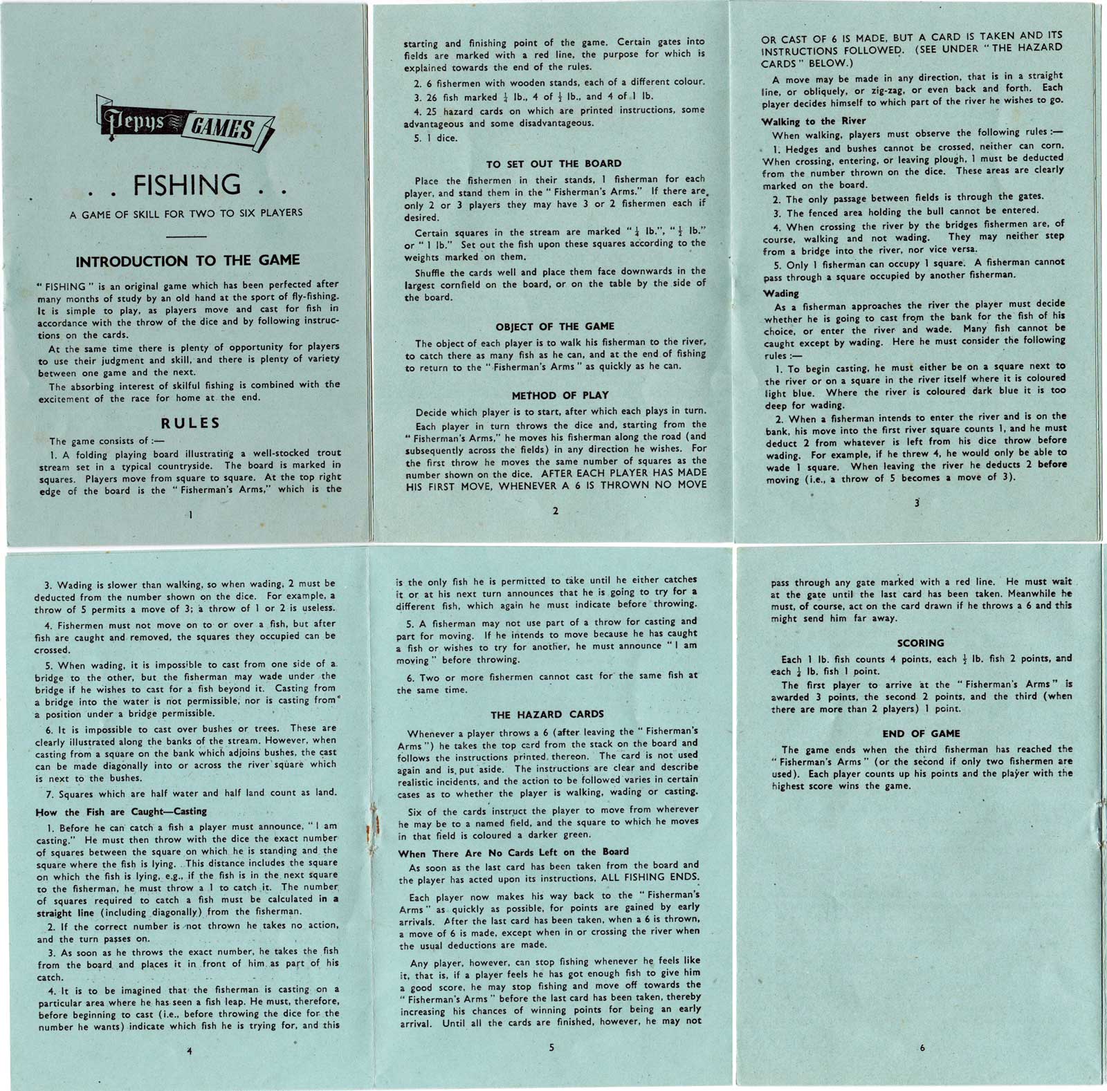 Above: Fishing cards and board published by Pepys Games, 1951.