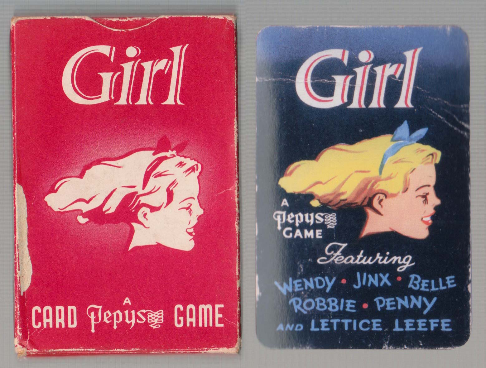 Above: selected cards from ‘Girl’ card game published by Pepys Games, 1955.