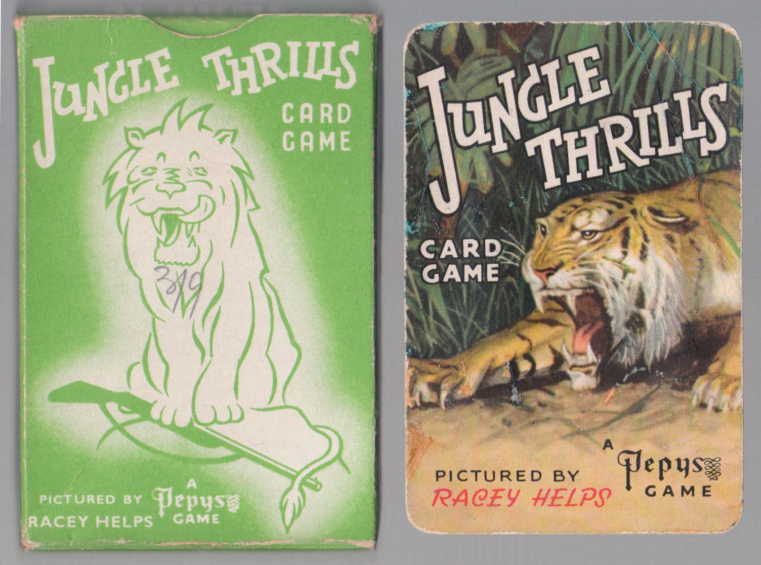 Above: Jungle Thrills published by Pepys Games, 1955. 44 cards + rules in box. The Hunter is considered a bonus card. From the collection of Rex Pitts.