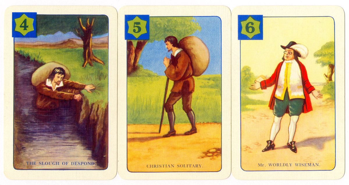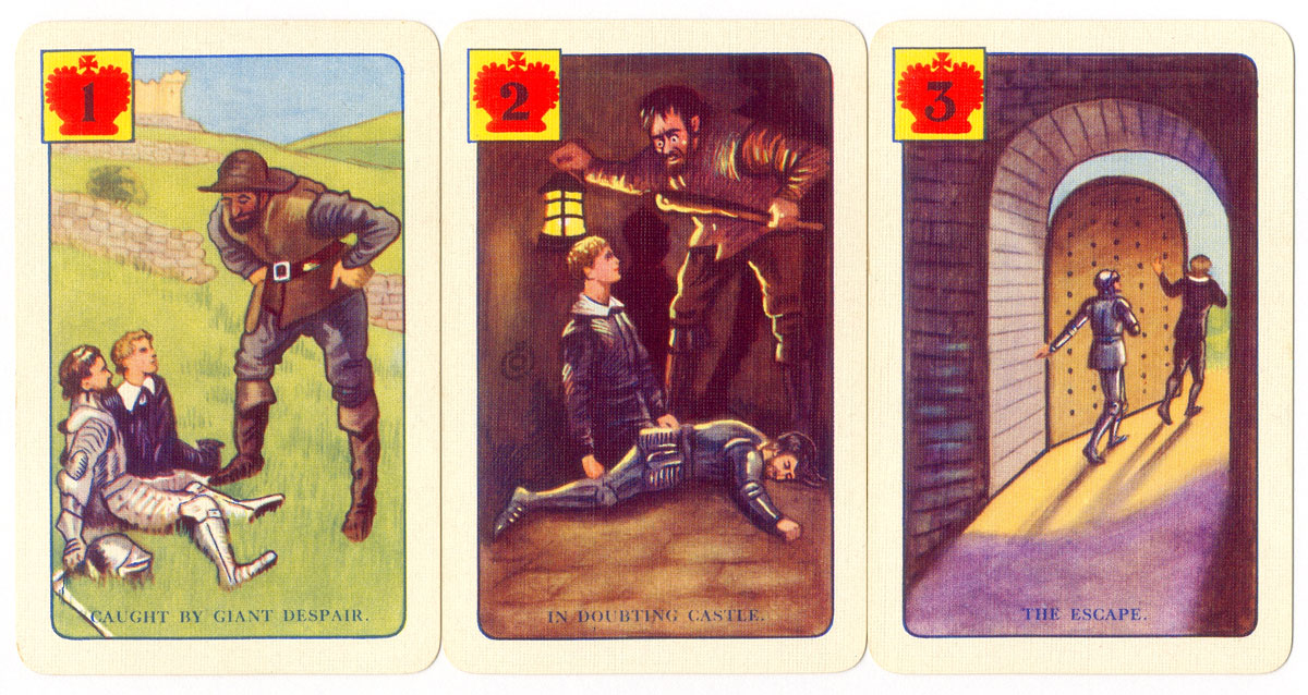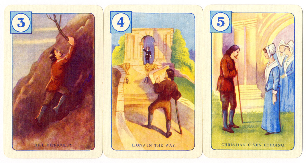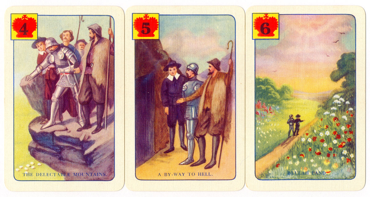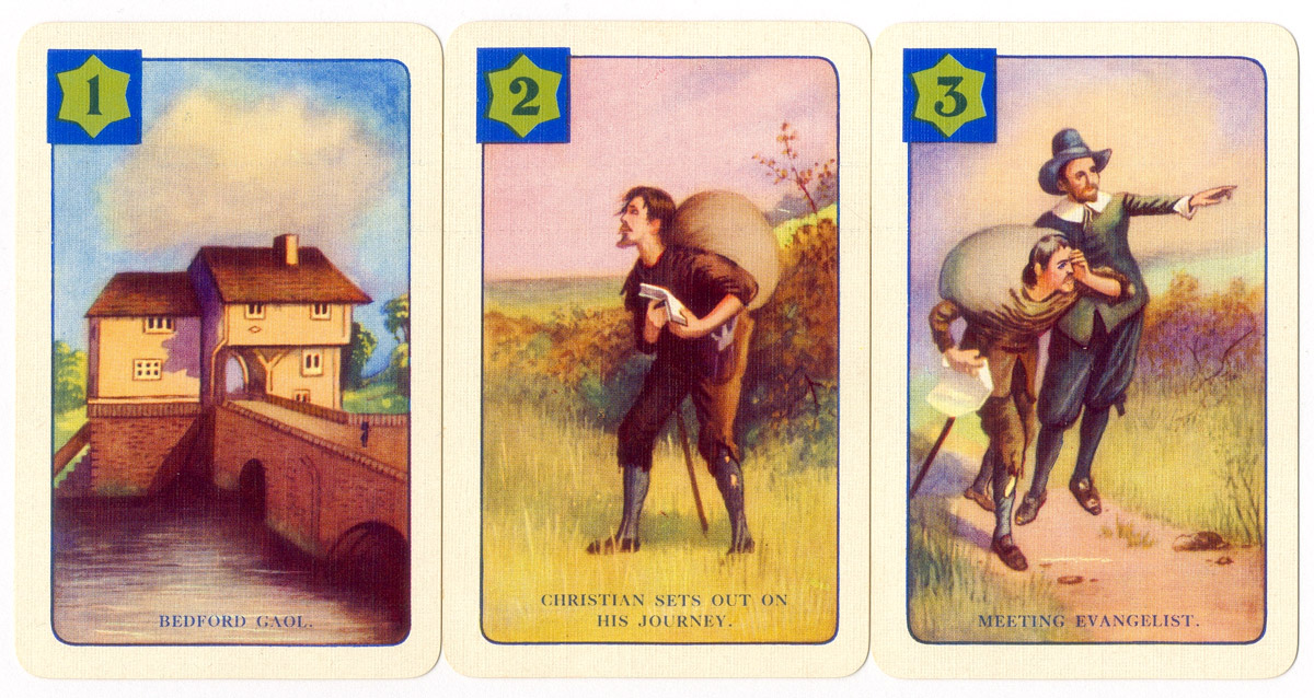 The story of “Pilgrim’s Progress” by John Bunyan illustrated in a card game published by Castell Brothers Ltd (Pepys Games), 1938.