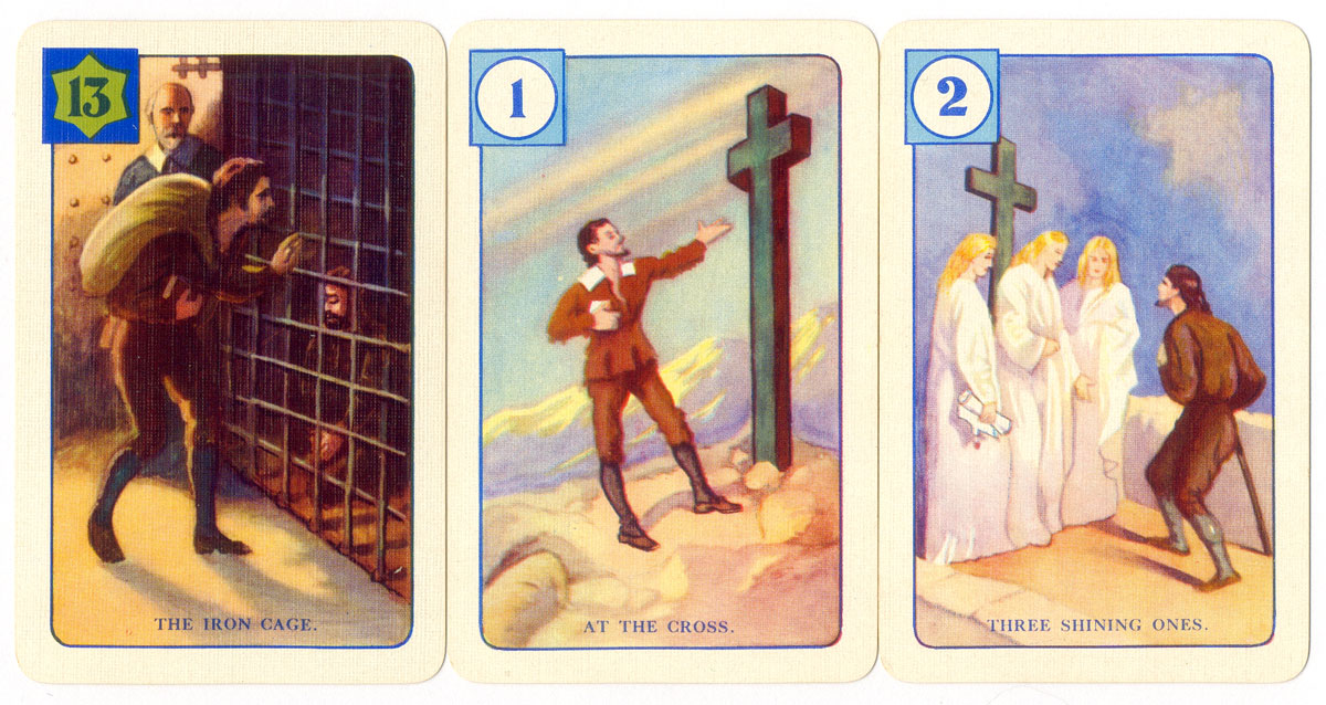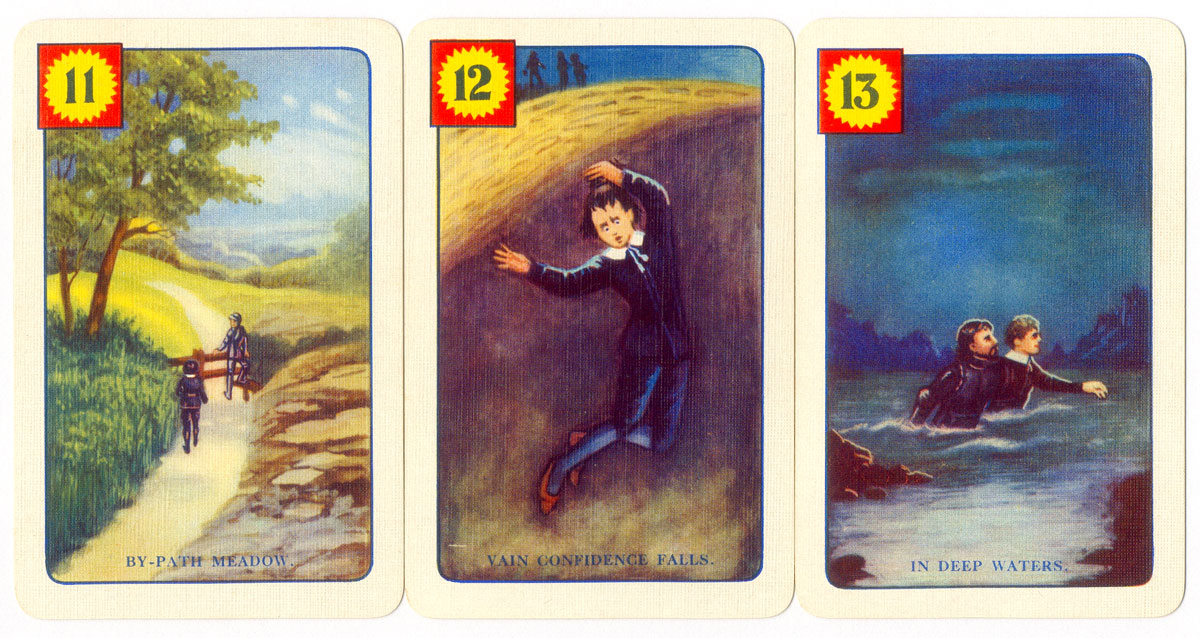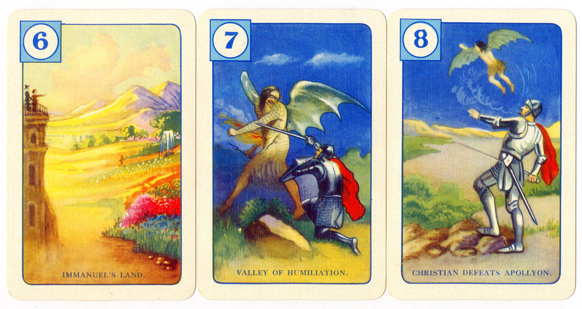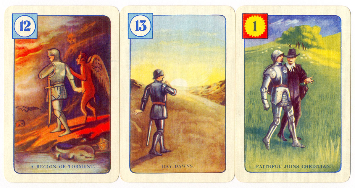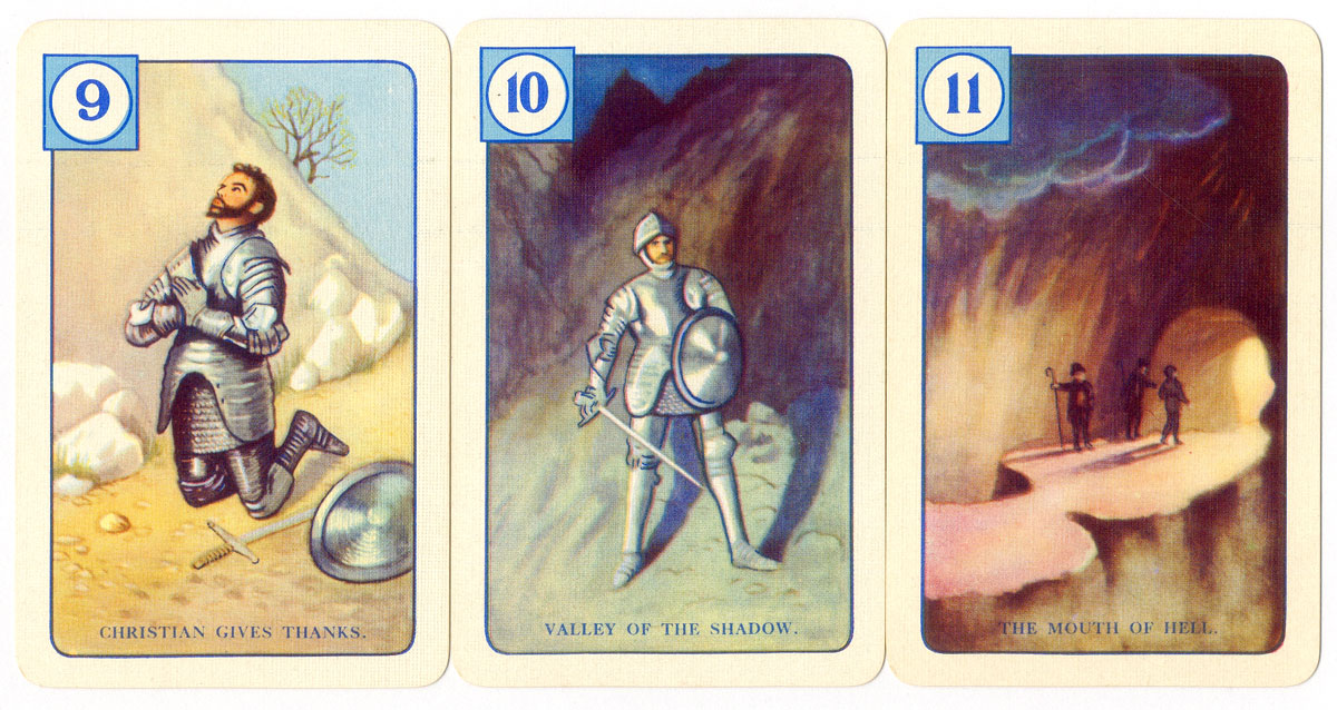 The story of “Pilgrim’s Progress” by John Bunyan illustrated in a card game published by Castell Brothers Ltd (Pepys Games), 1938.