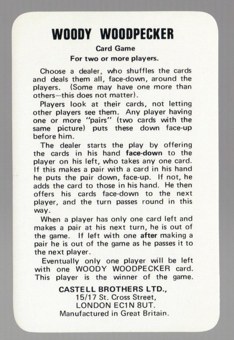 Above: Woody Woodpecker card game by Pepys, ©1975 Walter Lantz Productions Inc.
