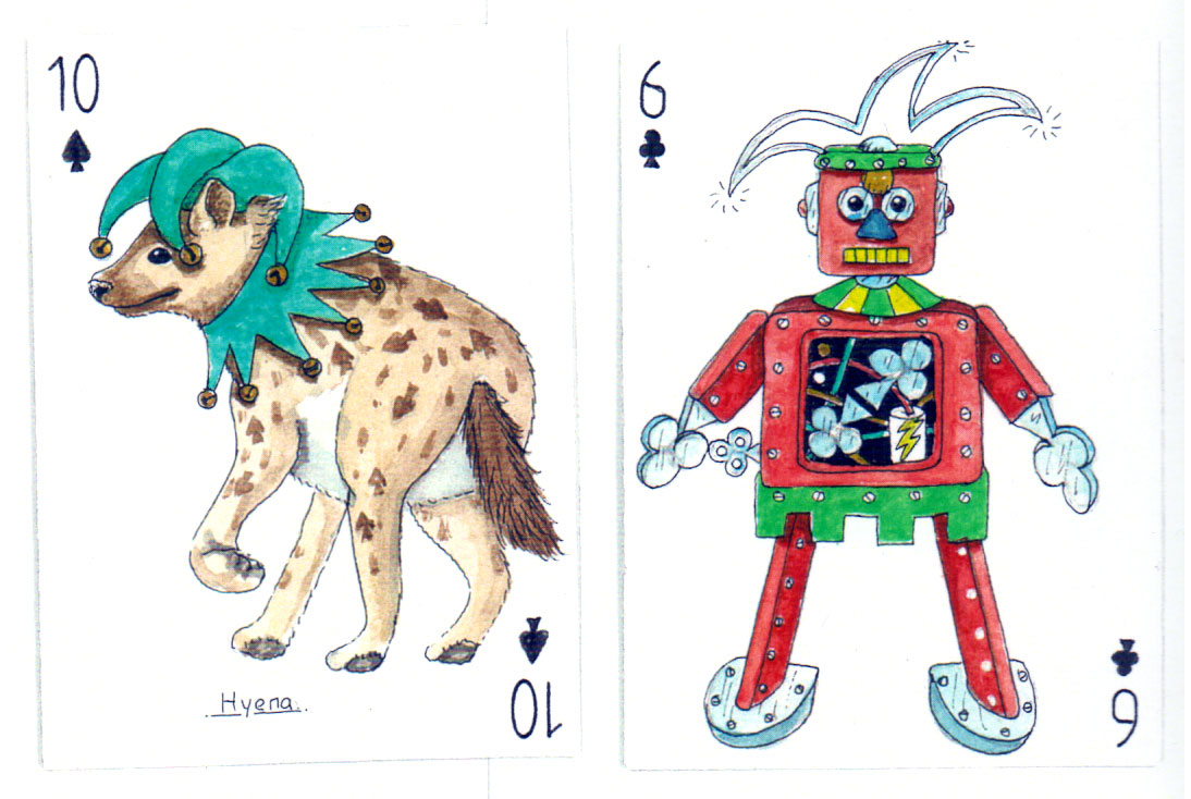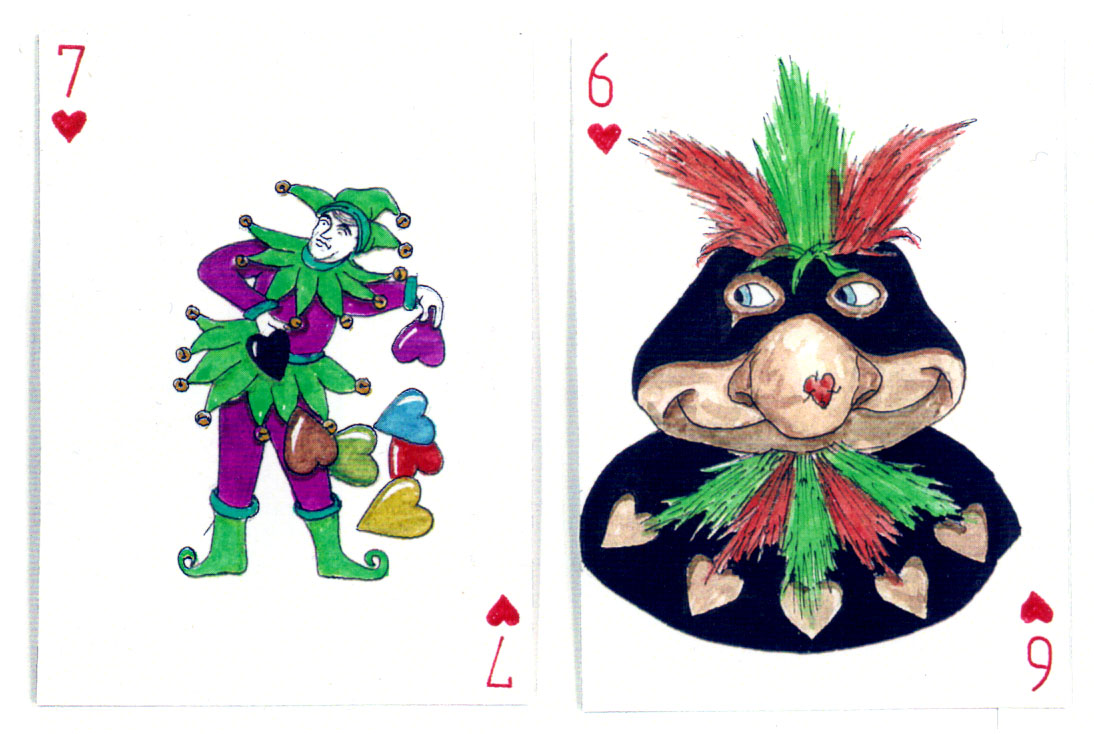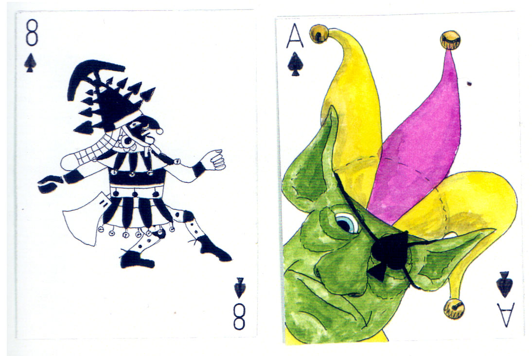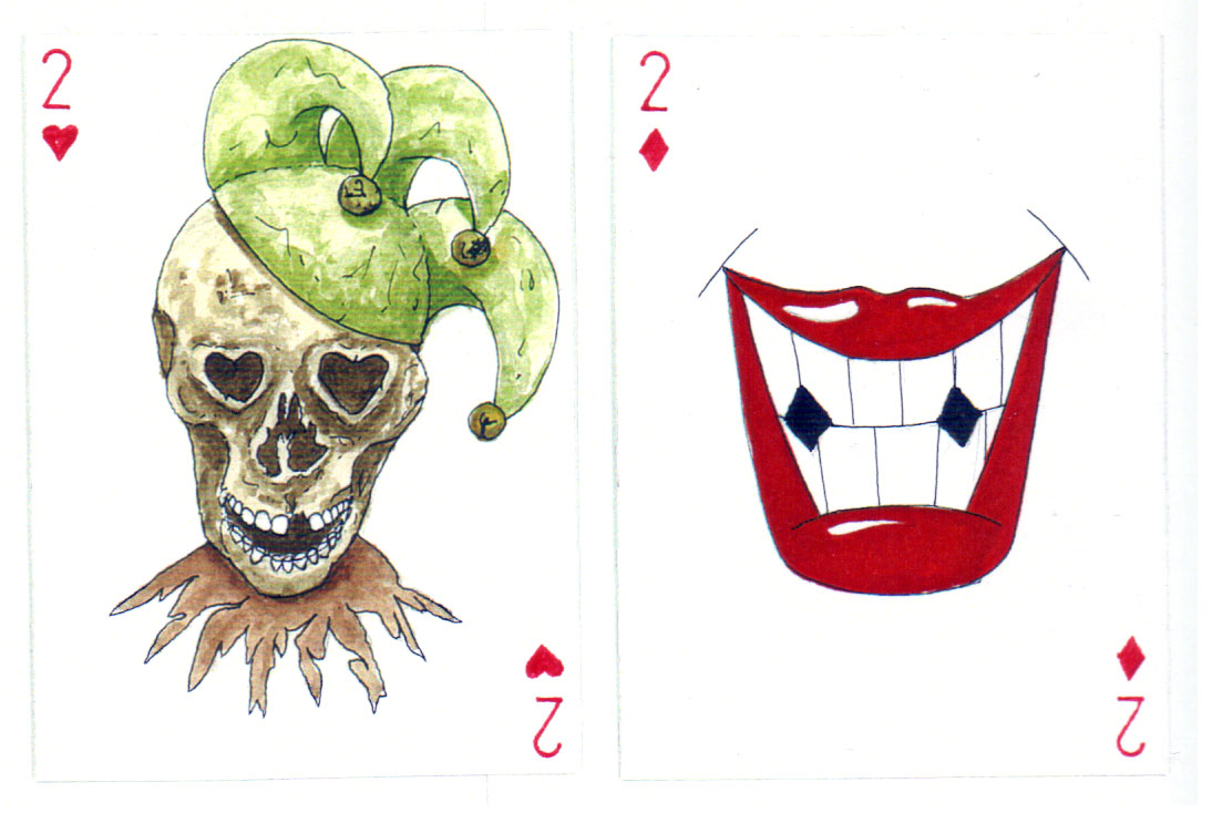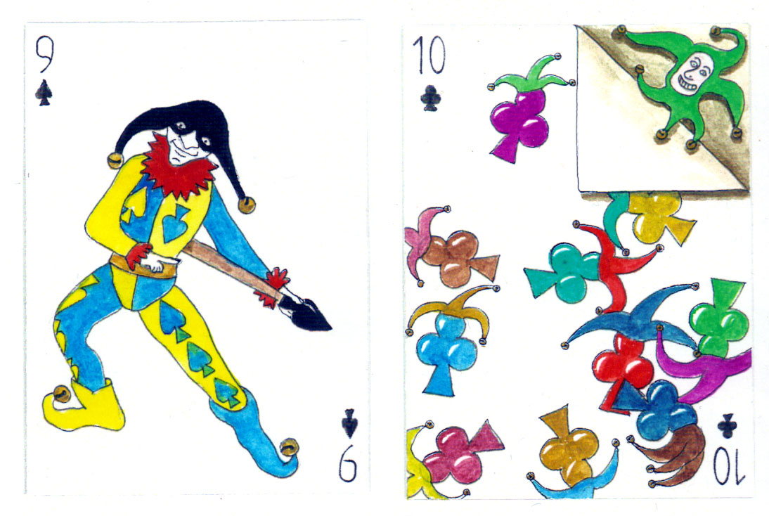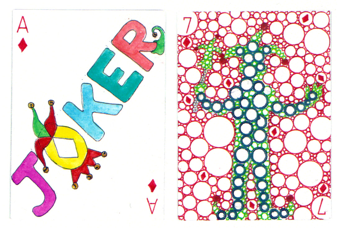 A pack of 54 different Joker designs created and produced by British playing card artist Peter Wood, 2000. As Pete explains: “The idea came from seeing joker collectors! I was asked for individual jokers from my decks so thought a deck of jokers could be fun!”