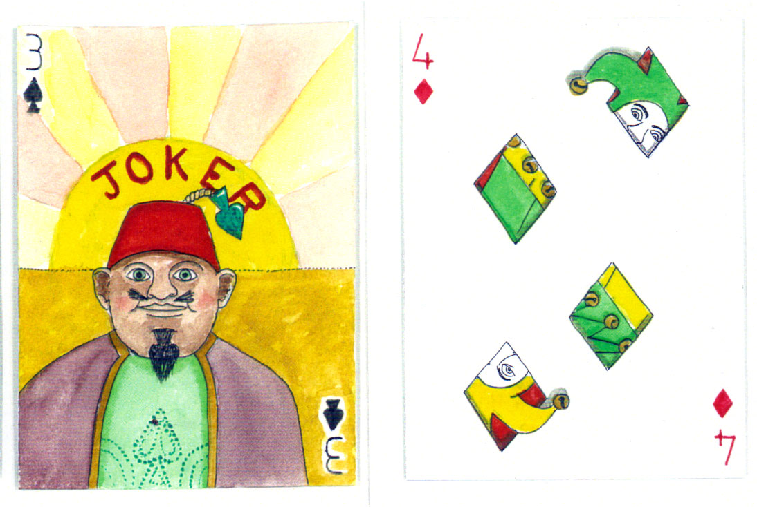Peter Wood’s “Jest Jokers” comprising 54 different Joker designs made into a full pack of cards.