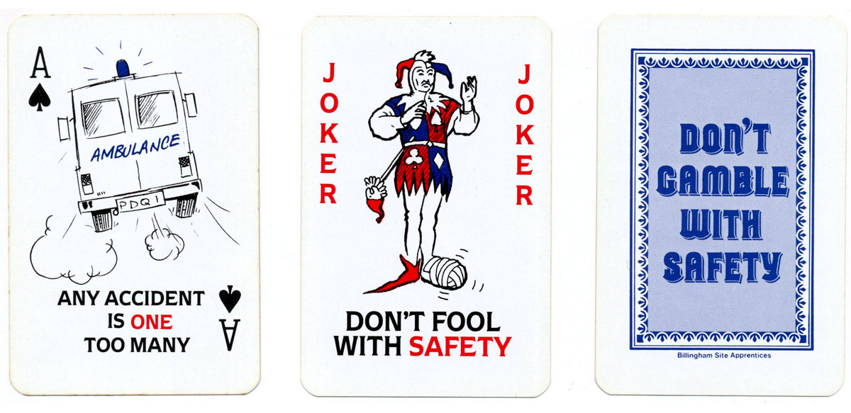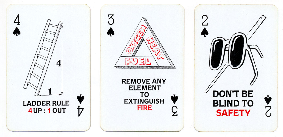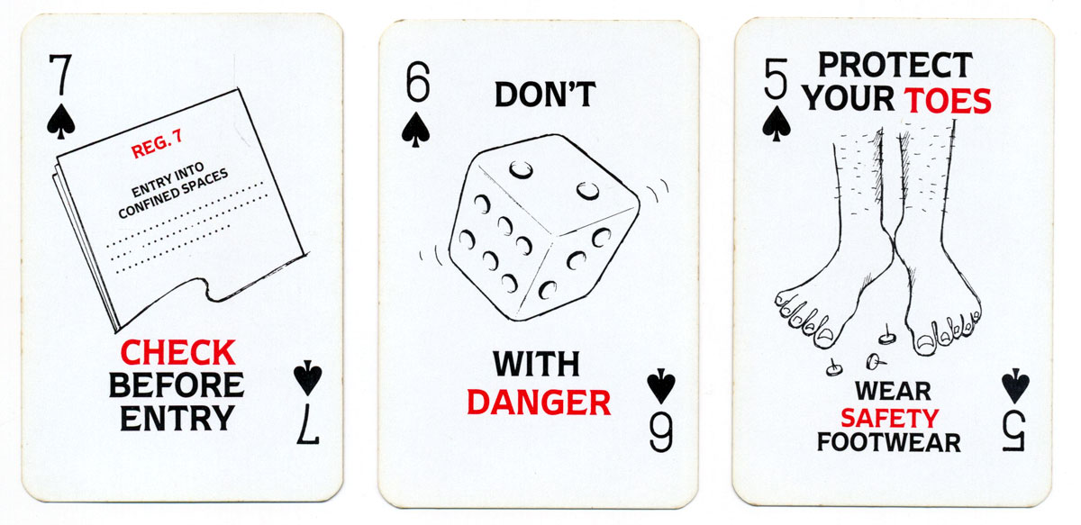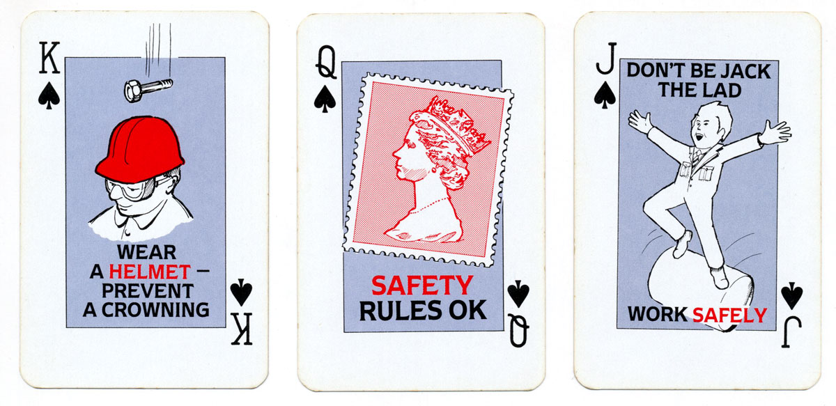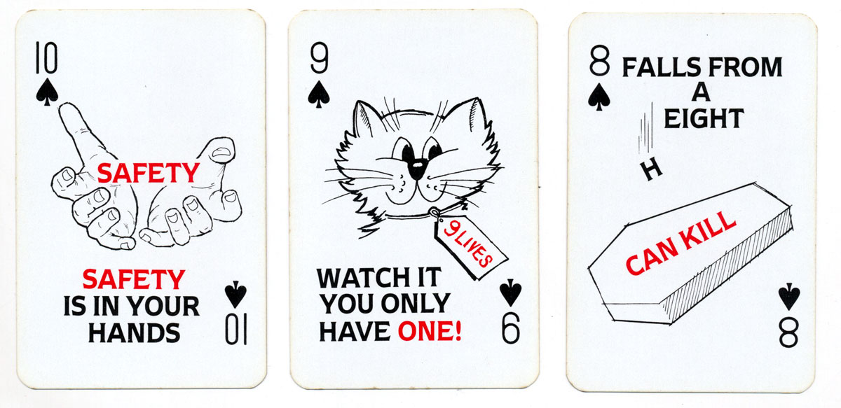 Above: Esso “Play it Safe” health & safety playing cards designed by John Mannion, produced by Cooper Johnson Ltd.