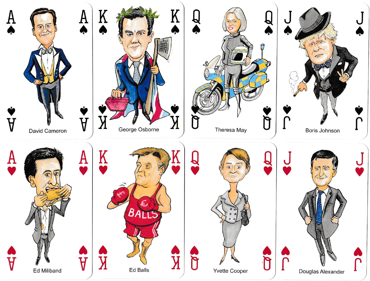 Political playing cards produced by Oliver Preston at the time of the 2015 UK Parliamentary election.