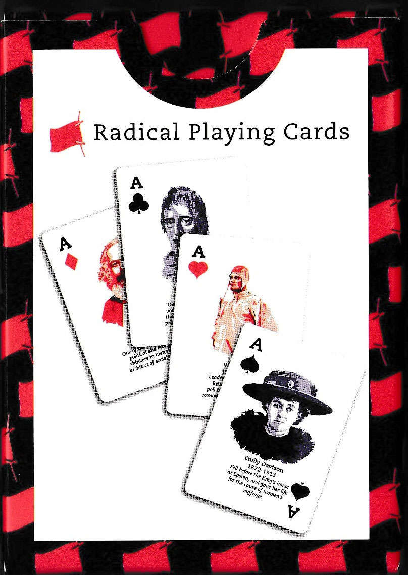 Radical Tea Towel, based in Abergavenny, Monmouthshire, began life manufacturing tea towels inspired by history’s great radical campaigns and heroes. The company now produces aprons, bags, calendars, etc., and this pack of playing cards – all intended for people with progressive values who want to give gifts that make you think, and who want to learn about where their rights and freedoms actually came from. See the box►