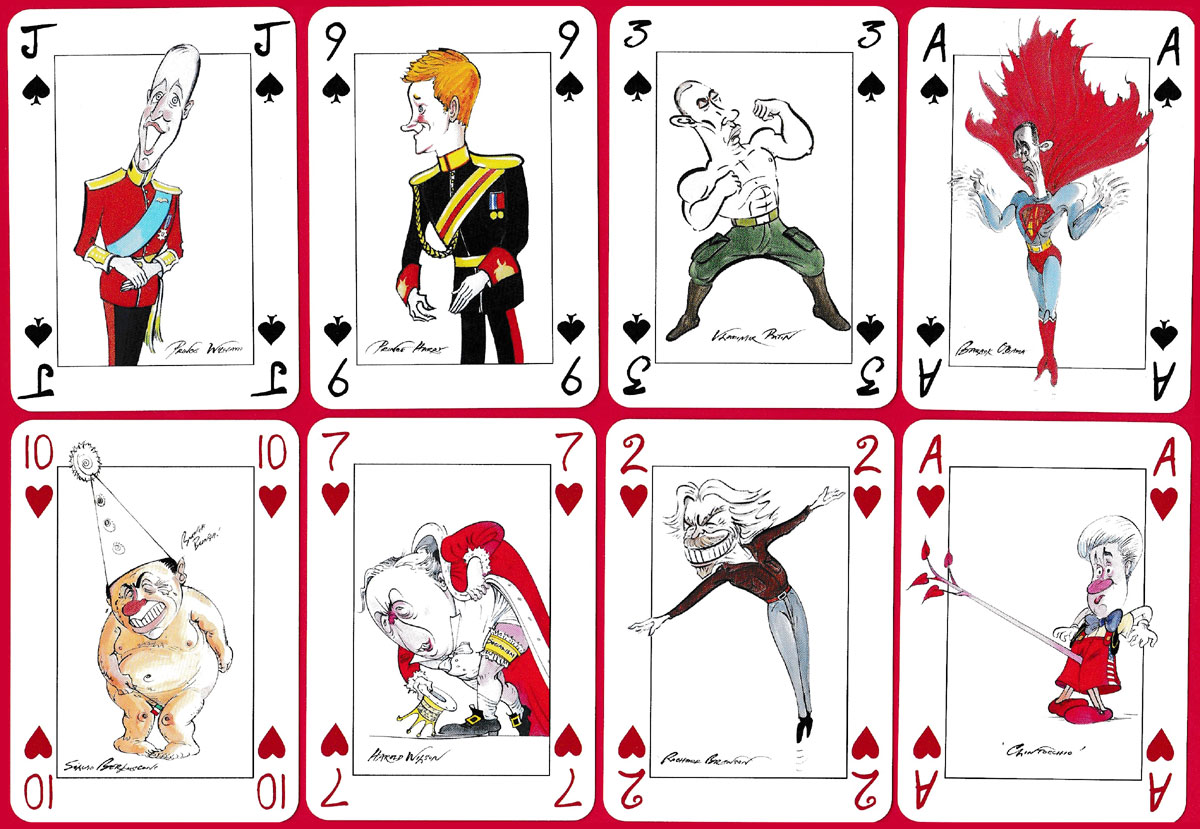 ‘Scarfes Bar’ satirical playing cards with cartoons by Gerald Scarfe, United Kingdom.