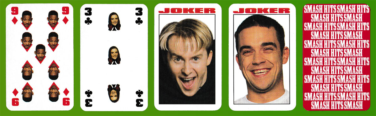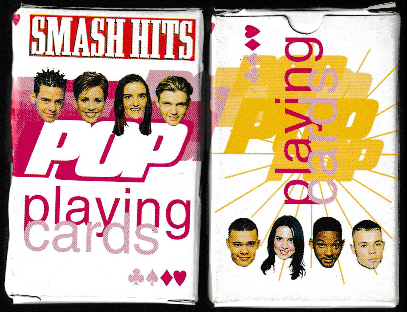 Above: Smash Hits playing cards, issued June 16, 1999. Maker unknown. 52 cards + 2 Jokers in tuck box. Size: 50 x 79.5 mm.