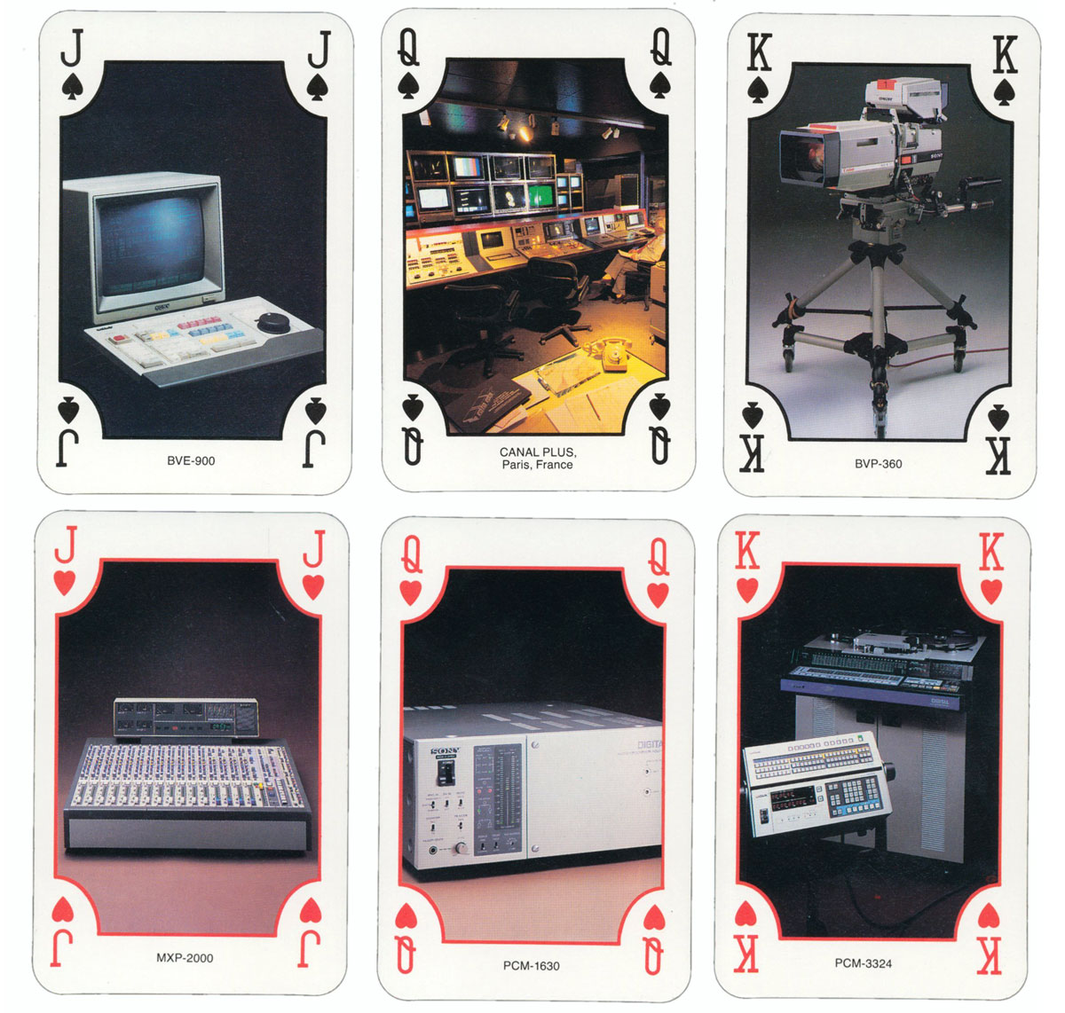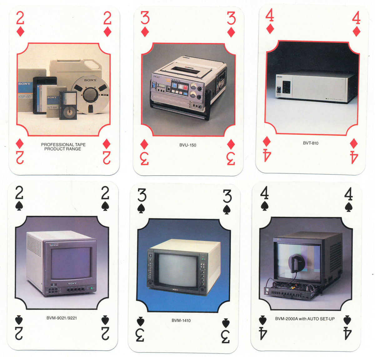 Above: Sony IBC’86 complimentary pack. The four aces are stylised with a repeated single word. Images courtesy Matt Probert.