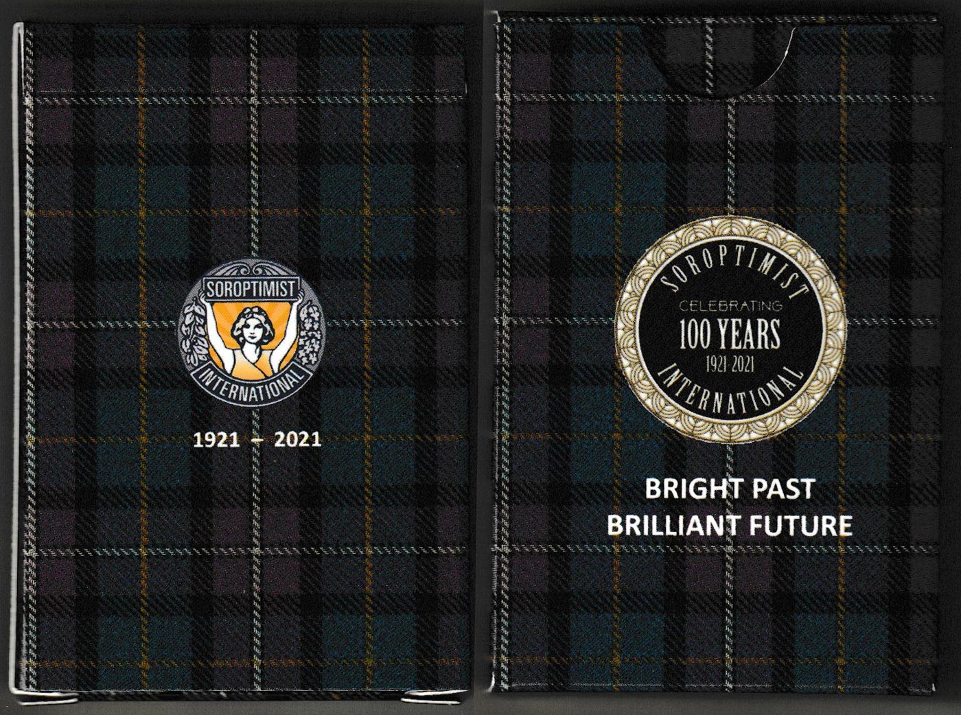 Above: Soroptimist International Scotland South Region playing cards published by SI Scotland South Region, 2021. Printer unknown. 52 cards + 1 extra card in tuck box, + 58-page booklet. Size: 56 x 87 mm.