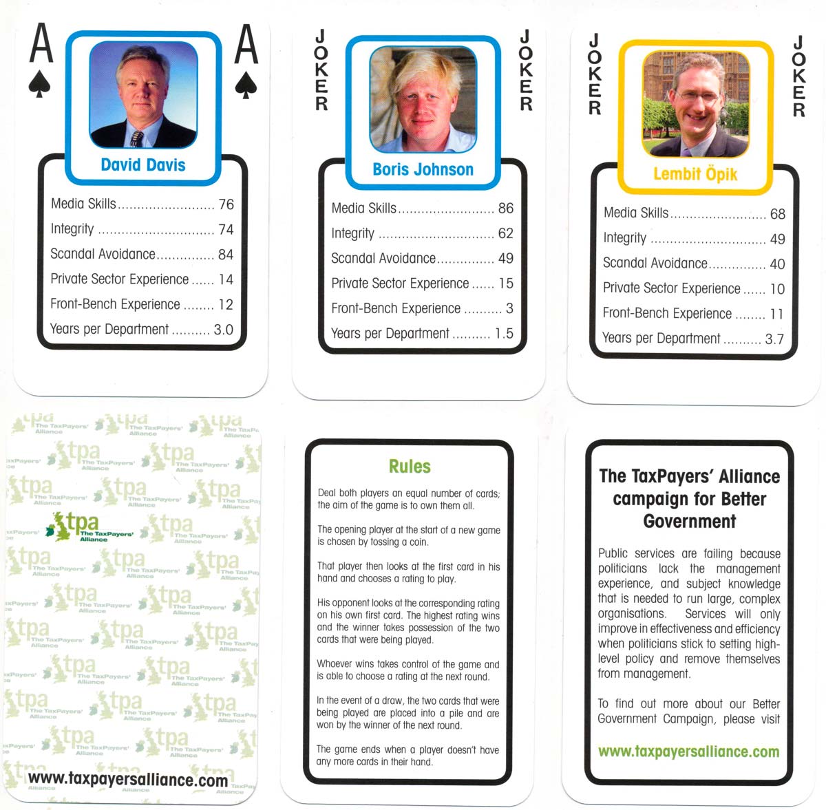 Above: Tax Payers’ Alliance Political Trumps, first produced in 2007.