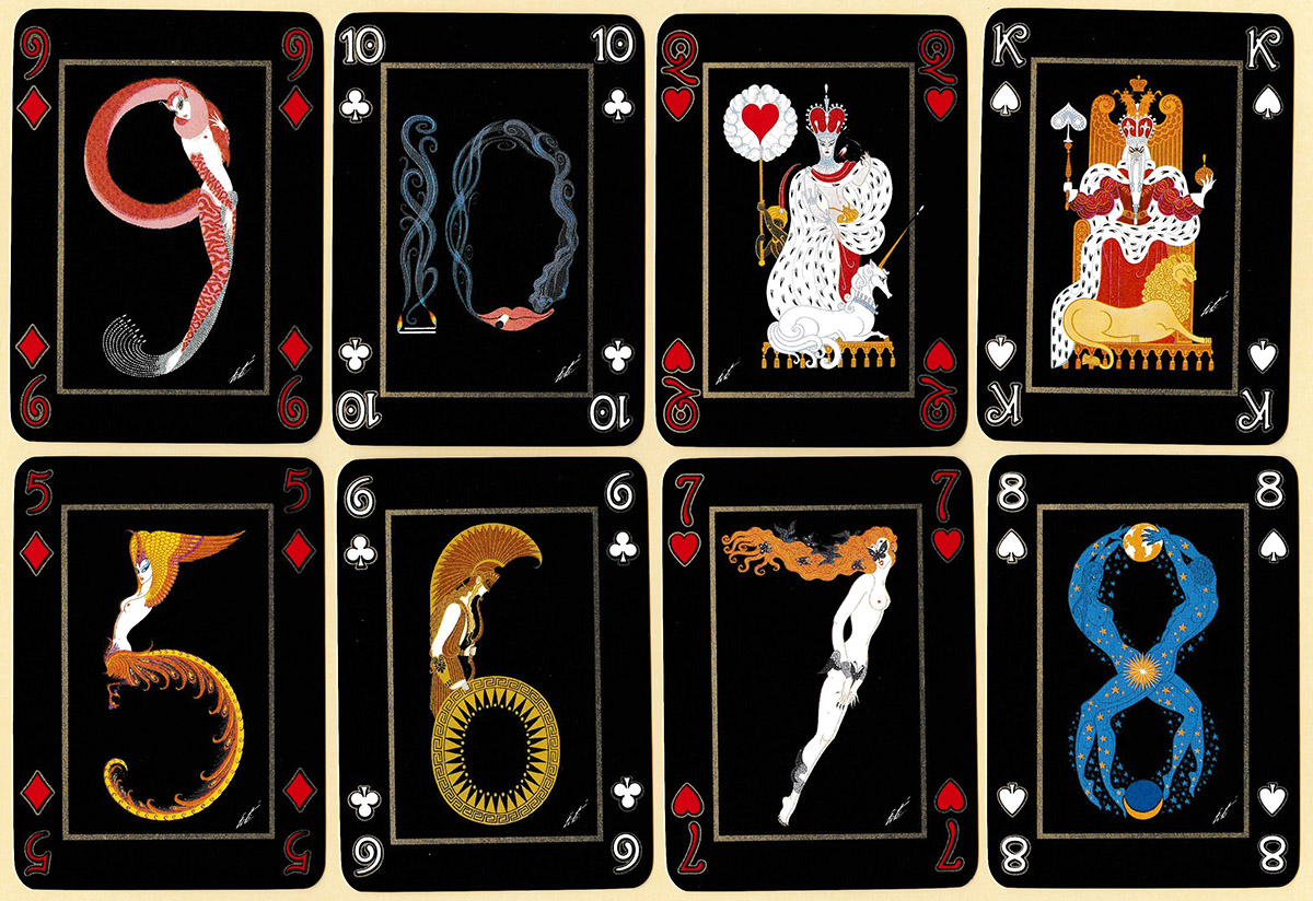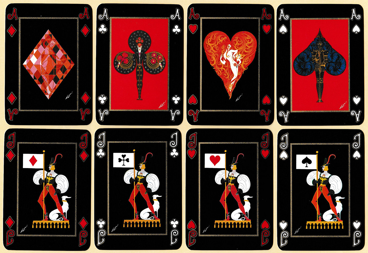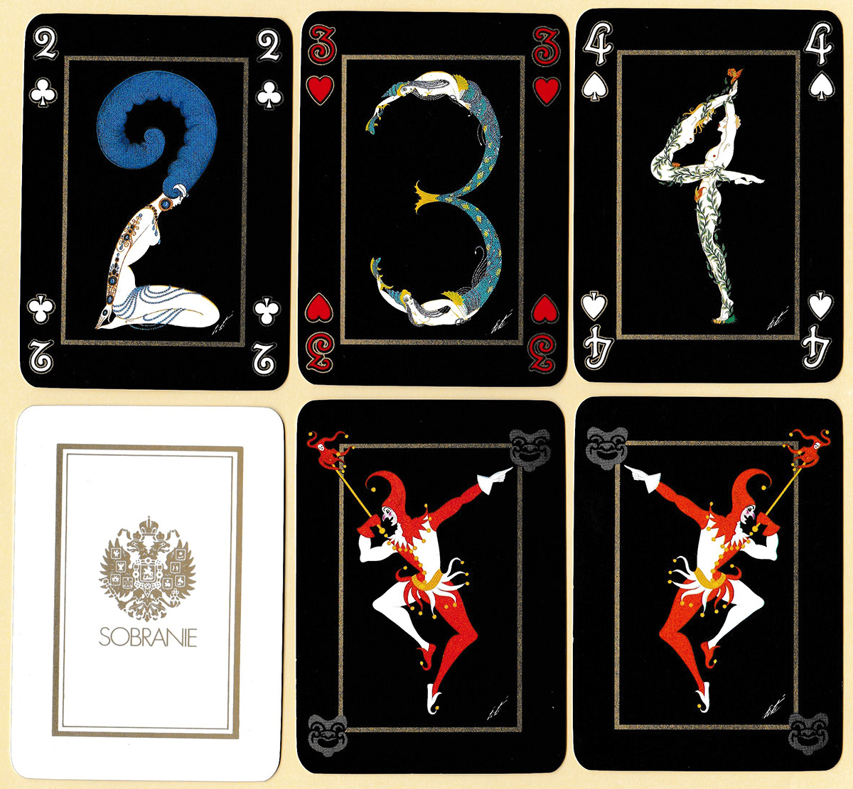 Above: The Art of Erté playing cards published in 1983 by Sobranie of London. 52 cards plus 2 jokers.