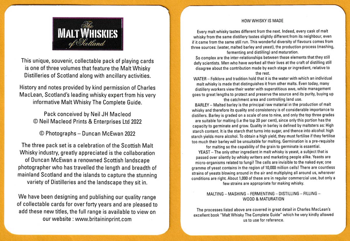 Above: The Malt Whiskies of Scotland playing cards (triple set) published by Neil Macleod Prints & Enterprises Ltd, 2022. Printed by Trefl in Poland. Each pack 52 cards + 2 Jokers + 1 extra card in tuck box. Size: 63 x 88 mm. © Neil Macleod Prints & Enterprises Ltd 2022. © Photographs – Duncan McEwan 2022.
