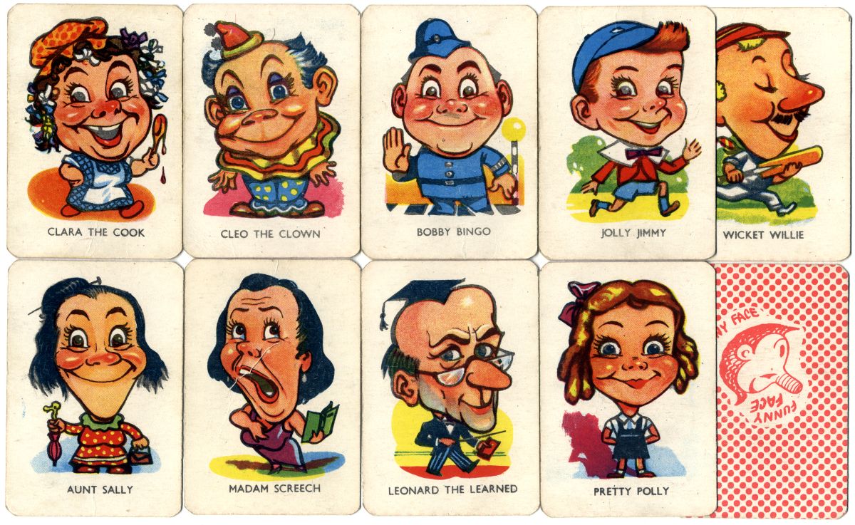 Above: Funny Face Snap, Tower Press product no.5369. Note the wide-eyed jolly faces, bright colours, the fun and innocence... The companion game 'Old Maid' was no.5360, 'Happy Families' no.5367 and 'Donkey' no.5370.