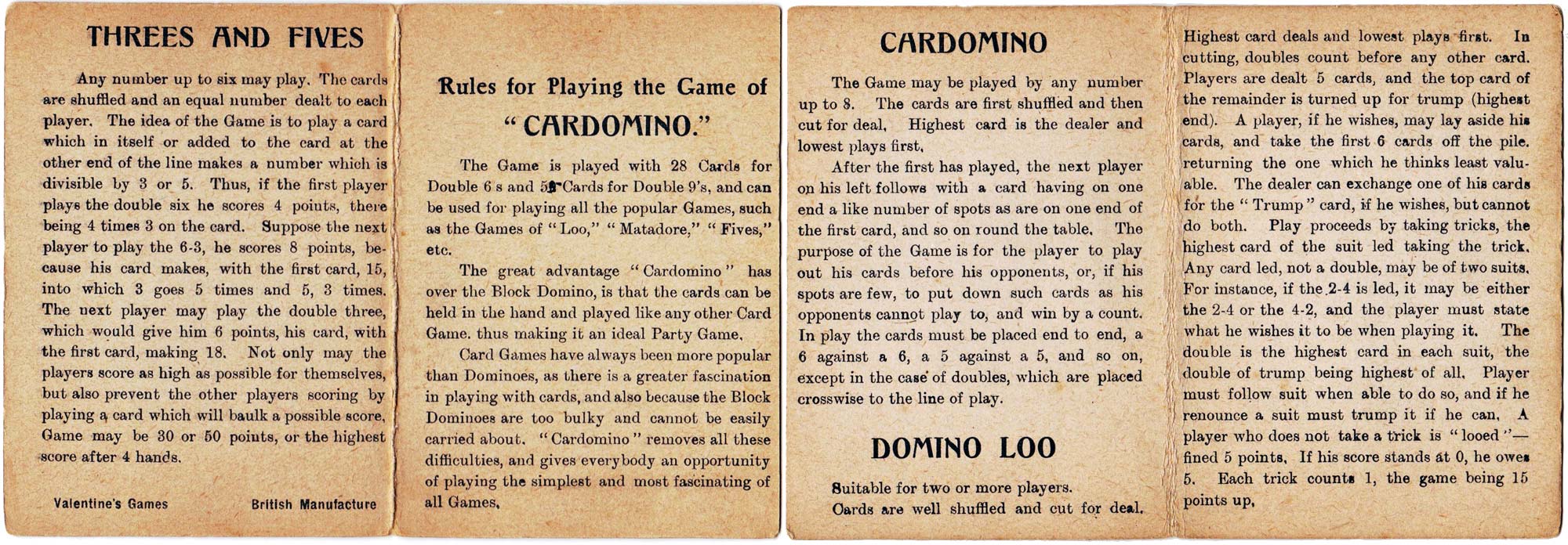 Valentine & Sons Ltd, Dundee & London, were greeting card and book publishers who also produced playing cards and party games during the early 20th century.