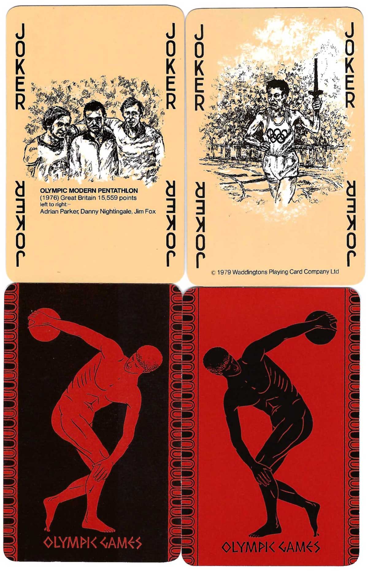 In the run-up to the Olympic Games held in Moscow in 1980 (i.e., sometime in 1979), Waddingtons decided to make 1976 Olympic Games medallists the subject of their 1980 calendar pack (calendar packs being given by Waddingtons to good customers around Christmas each year from 1976 to 1997 approx.). As you can see from the back of one of the Jokers, the Moscow Games are clearly mentioned.