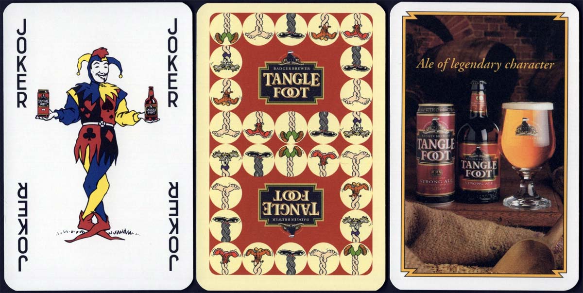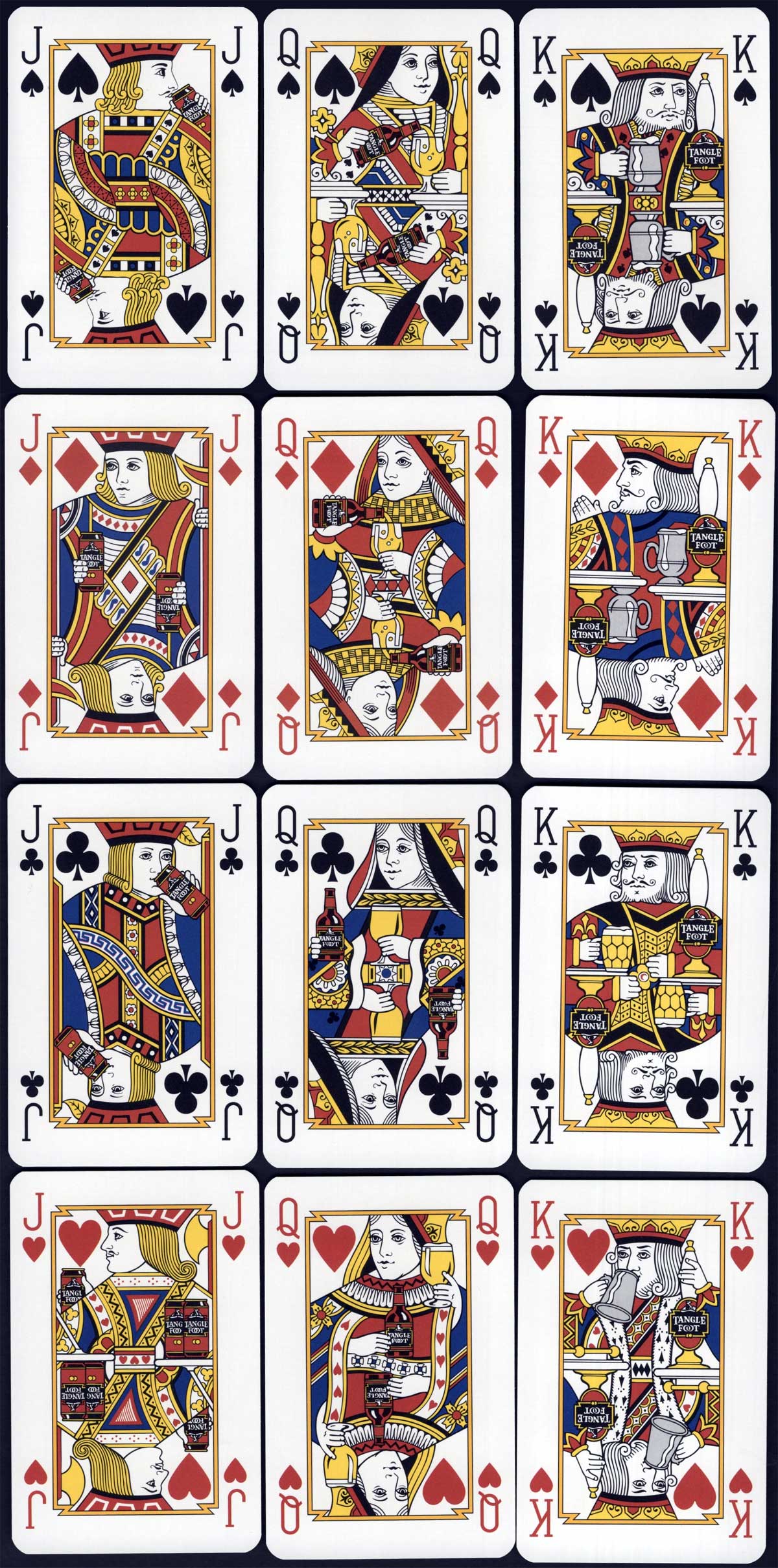 All of the court cards and the jokers have Tangle Foot related images as part of the design.