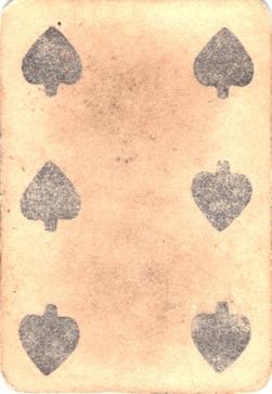 Above: Six of Spades by Ford: Illustrates the unique up-down symmetry typical of American cards from this era, absent in contemporary English cards."