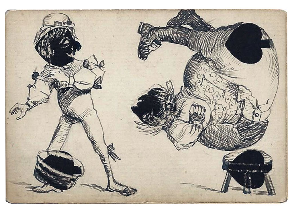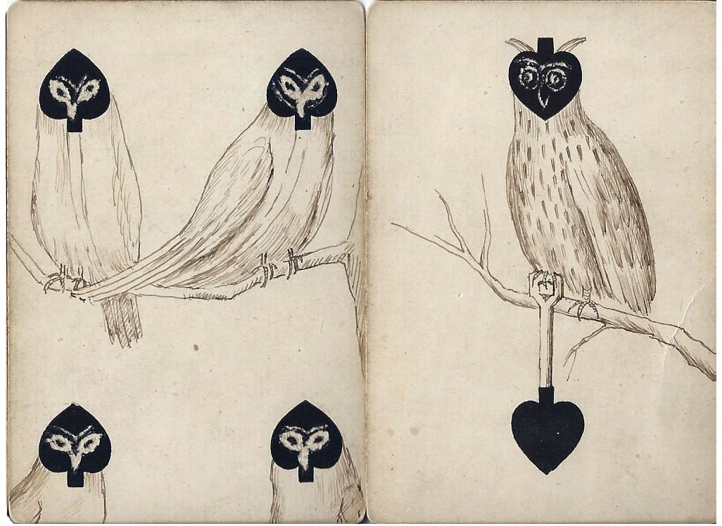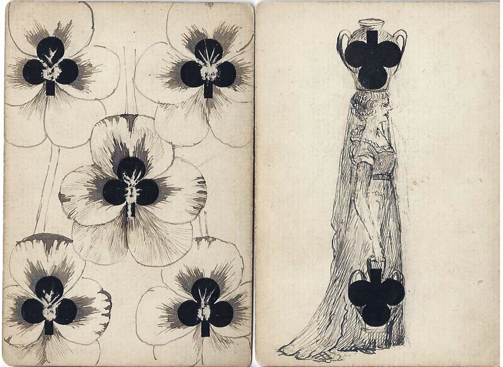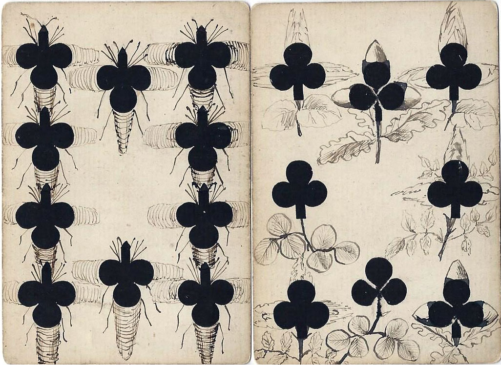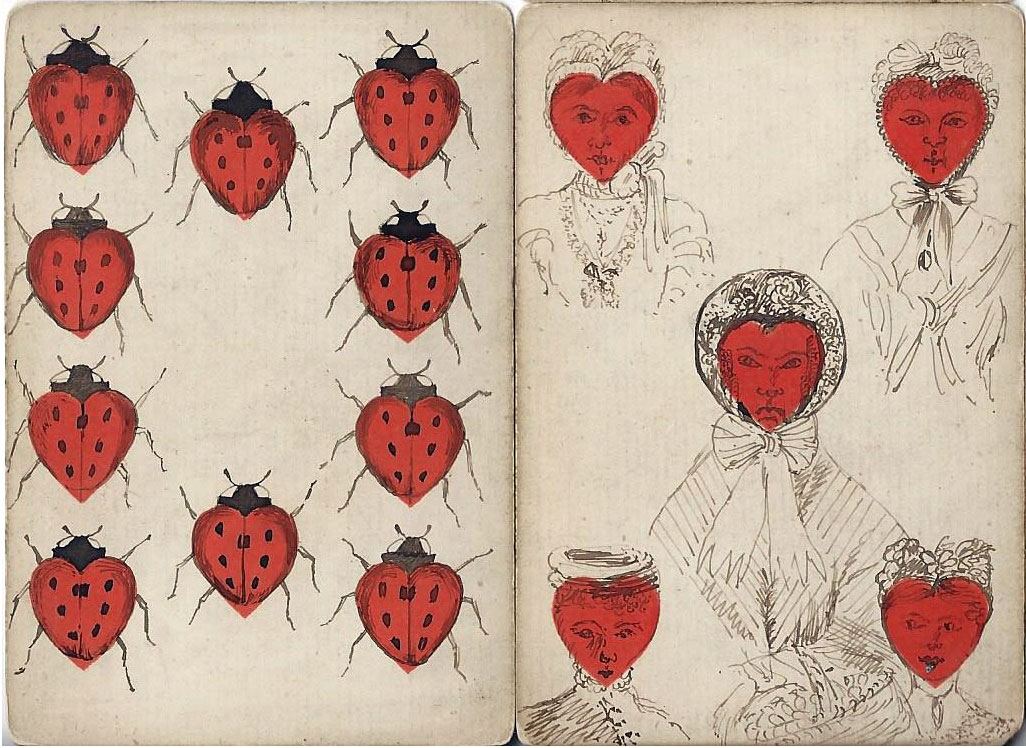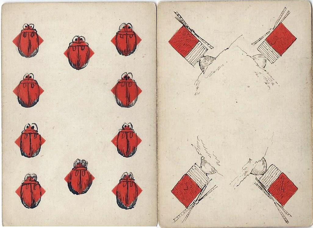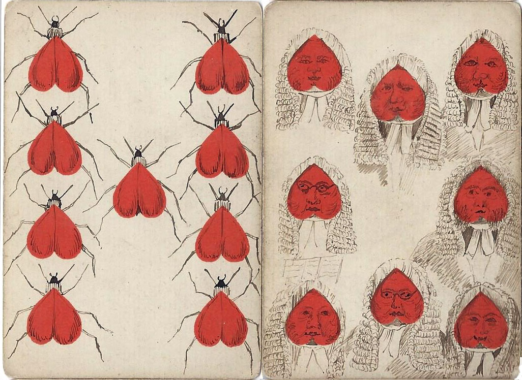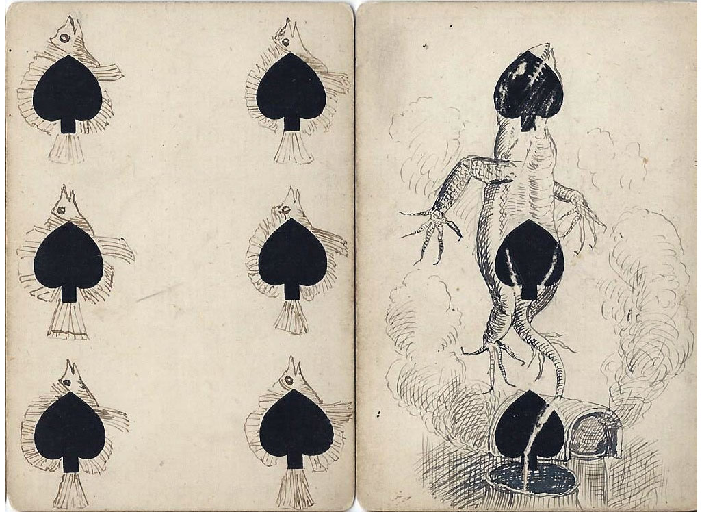 Transformation playing cards hand-drawn on a pack manufactured by Hunt’s Playing Card Manufacturing ...