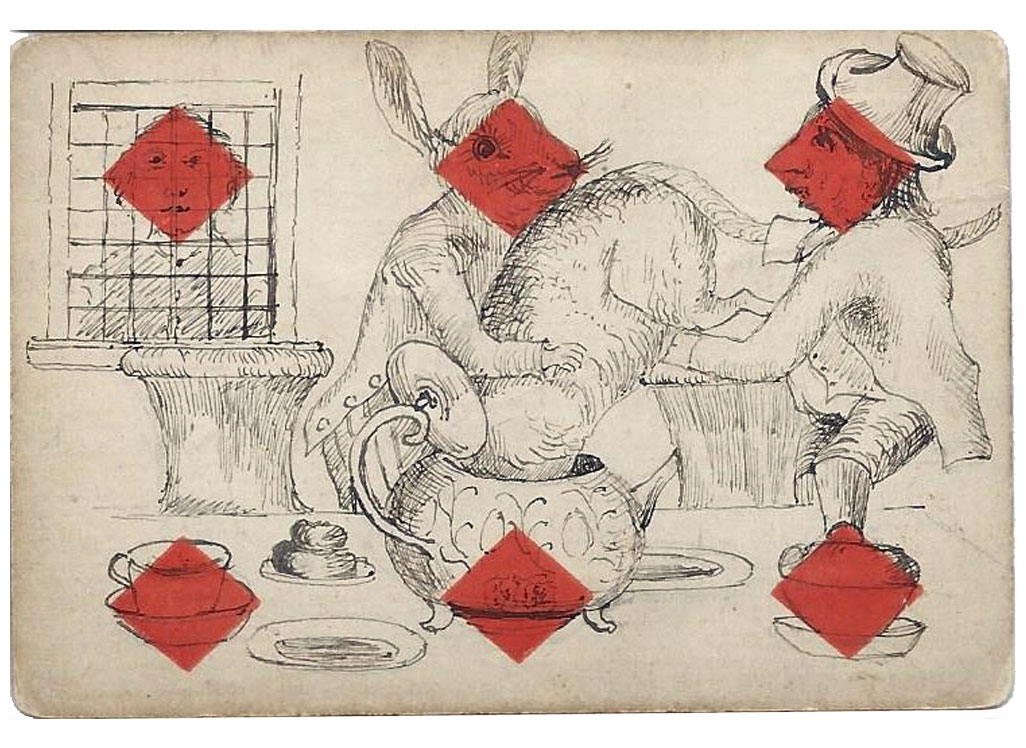 Transformation playing cards by William Makepeace Thackeray, 1876.