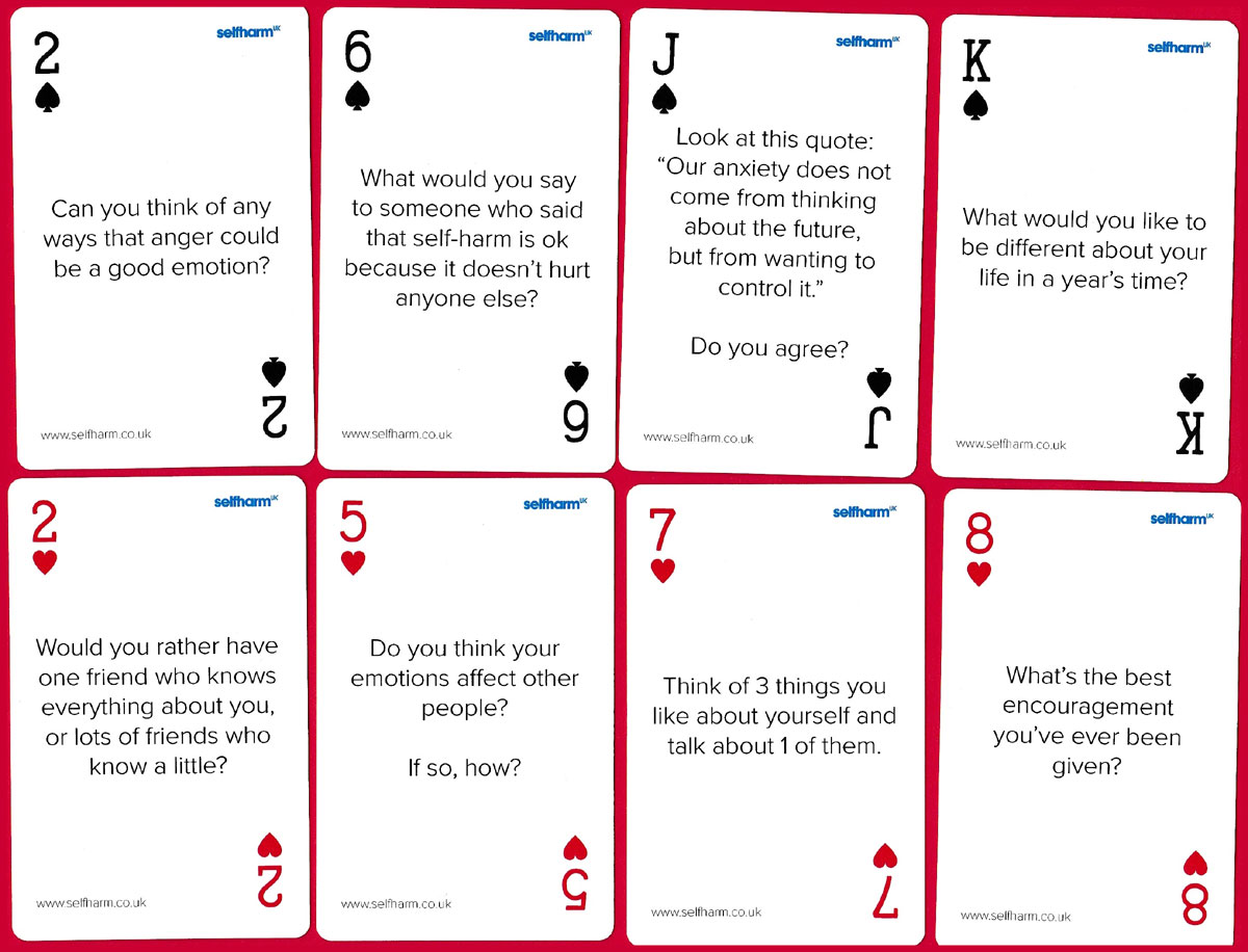 Two packs of playing cards offering emotional help and support to young people.