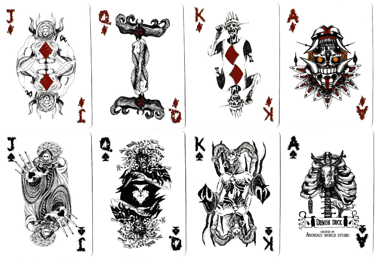 “Demon deck” Playing Card Deck by Anomaly World Studio; 54 amazing hand drawn cards which shows the demons from Underworld. “We are Anomaly world studio and we create a custom playing cards. Our first project - Demon Deck playing cards. We start raise money on Kickstarter.com so we please your help to make this project successful!”