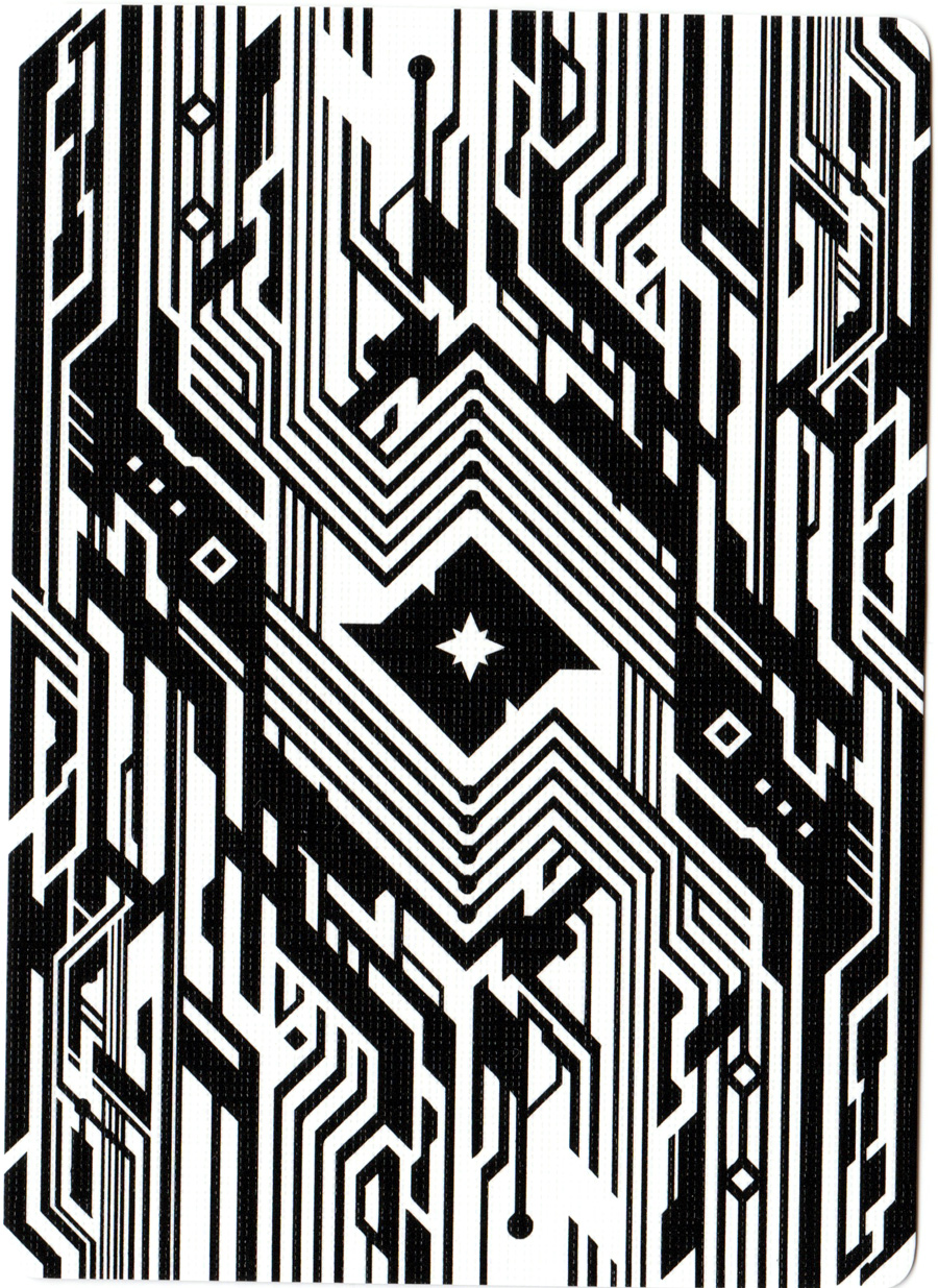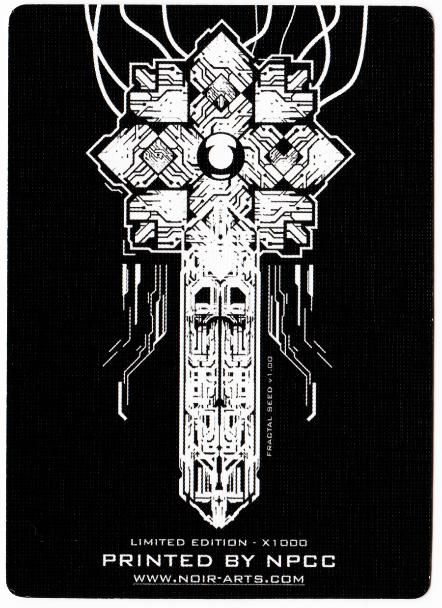 Fractal Seed, cyberpunk themed playing cards designed by Ivan Fortunov, a Bulgarian game designer, architect, and artist. The deck was produced in collaboration with Ukraine-based Roman Kotiv, the owner of Noir Arts. Roman Kotiv has been producing playing cards for the local Ukraine market under the Noir Arts brand since 2005, and officially incorporated Noir Playing Card Company (NPCC) in 2014; where he's been focused on producing decks funded via Kickstarter in collaboration with artists from around the world.
