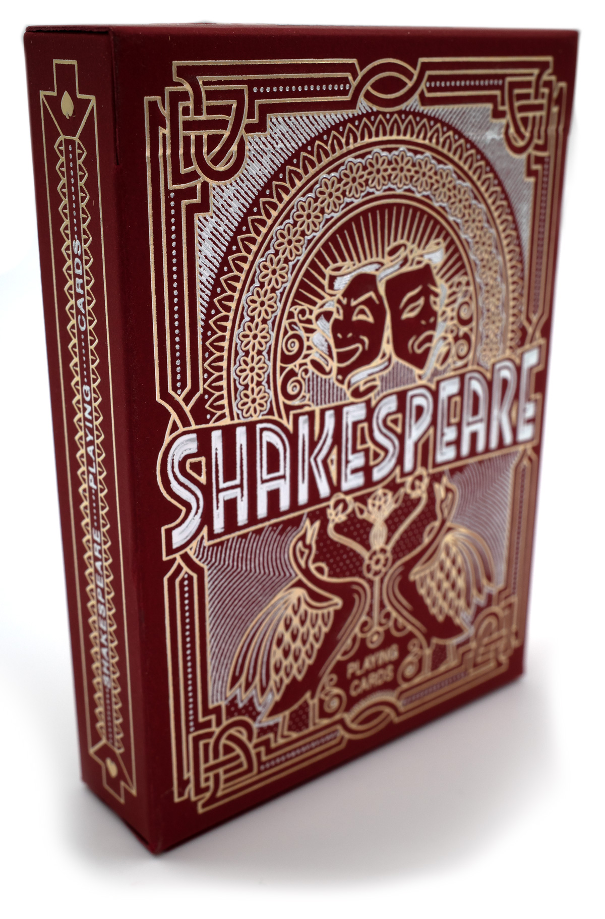 Shakespeare Playing Cards, produced by Noir Arts and Trient Playing Cards, is a recreation of the Shakespearean pack first illustrated by Colin Tilney and produced by Swan Sonnenschein & Co Ltd. in 1902, with subsequent editions by Waddingtons and Faulkner. This new edition was made possible through a Kickstarter campaign, which gained support from 237 backers who pledged $18,004. The cards were designed by Ukrainian artist Maksym Lebedyk and are part of a three-deck collection that also includes the Classic Black and Antique editions.