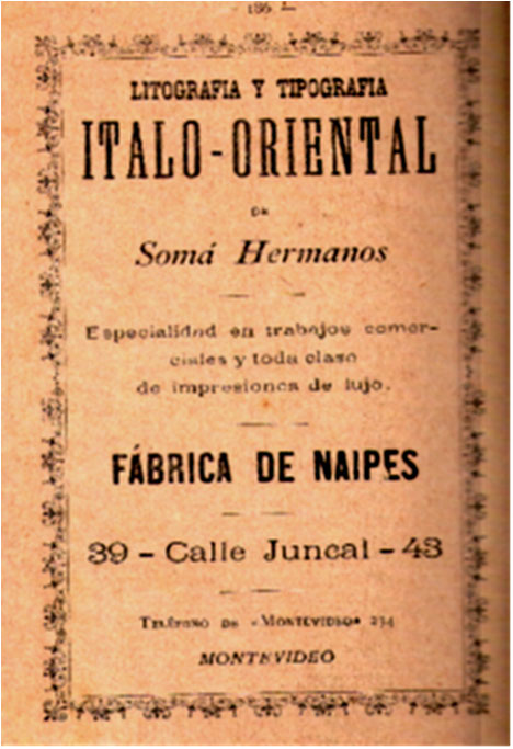 Somá Hermanos, Litografía y Tipografía Italo-Oriental, Fábrica de Naipes (Montevideo), 1896