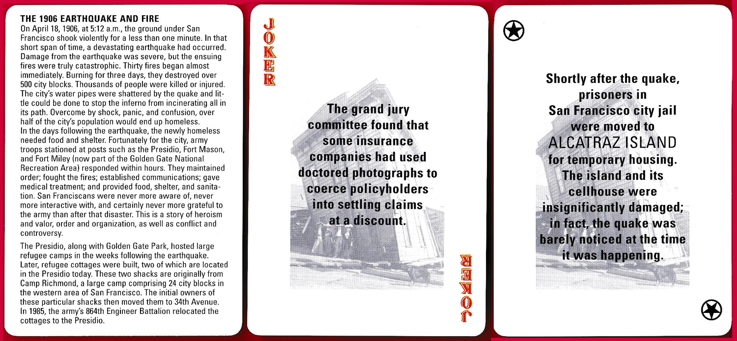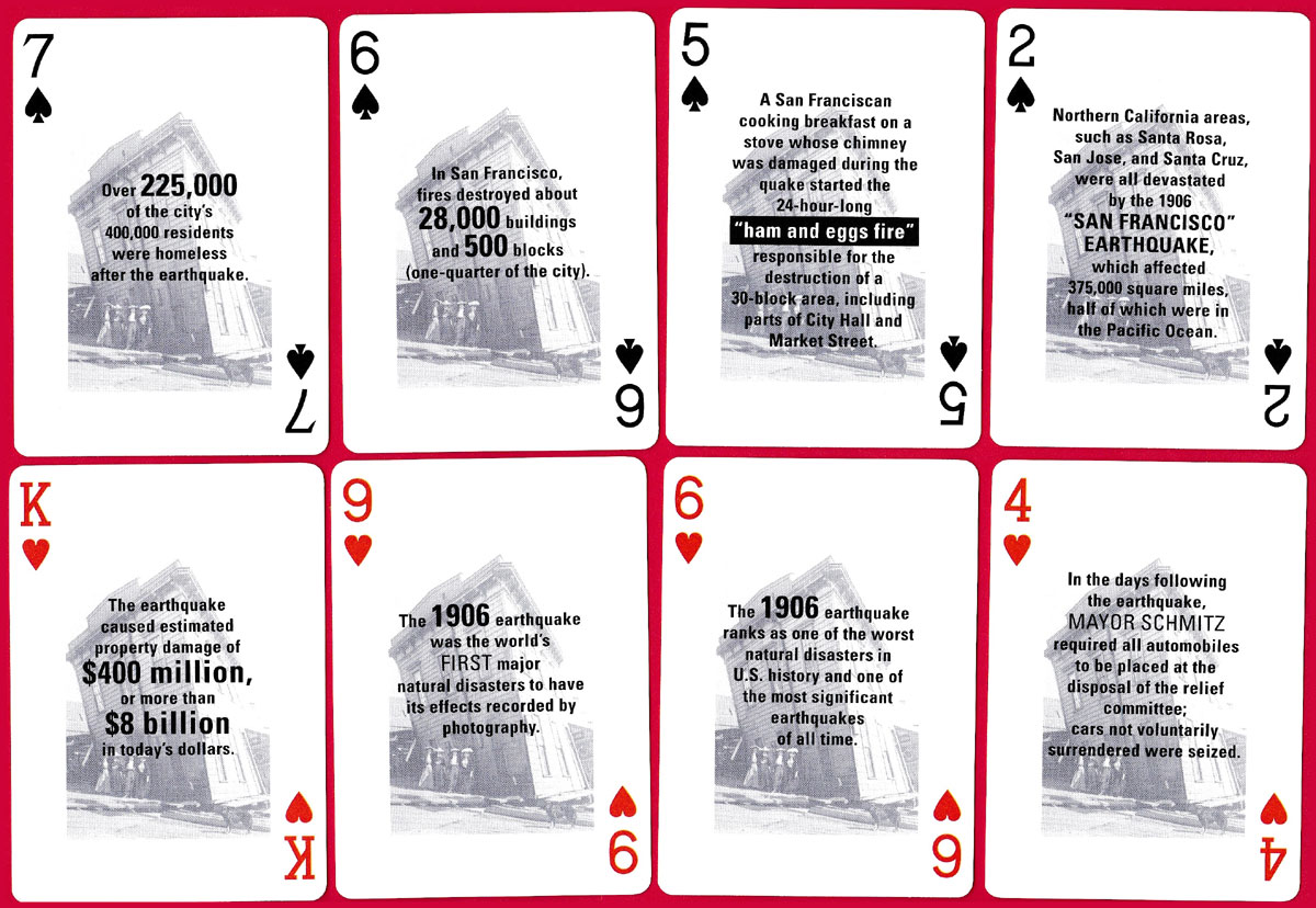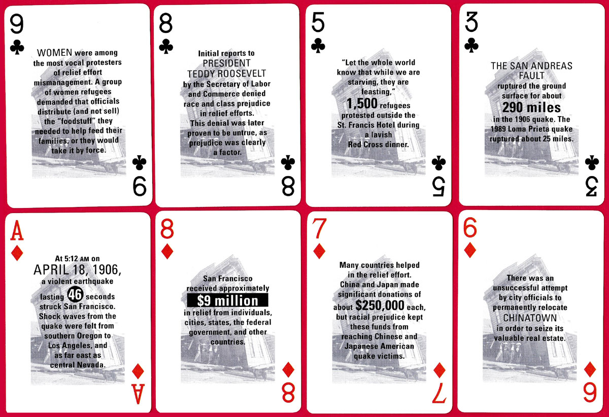 Above: 1906 Earthquake commemoration playing cards published by the Golden Gate National Parks Conservancy, and printed by Piatnik, Vienna in 2005.