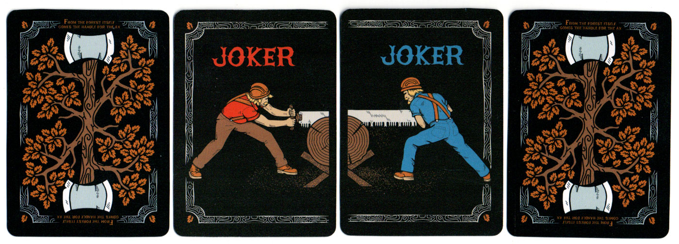 Above: cards from the 2nd edition of Lumberjacks designed by Vadim Smolenskiy and manufactured by U.S.P.C.C. Get your copy here: www.lumberjackplayingcards.com→